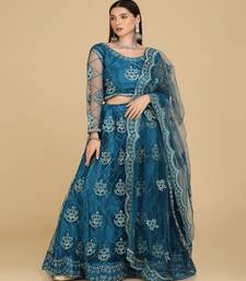 Turquoise blue & embroidered thread work semi stitched lehenga & unstitched blouse with dupatta