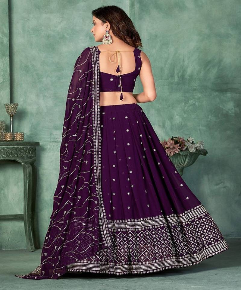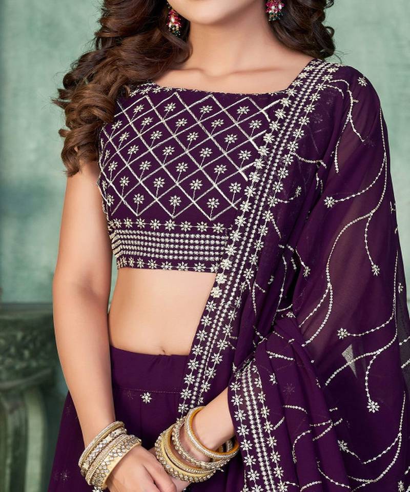 Women embroidered sequinned semi stitched lehenga & unstitched blouse with dupatta
