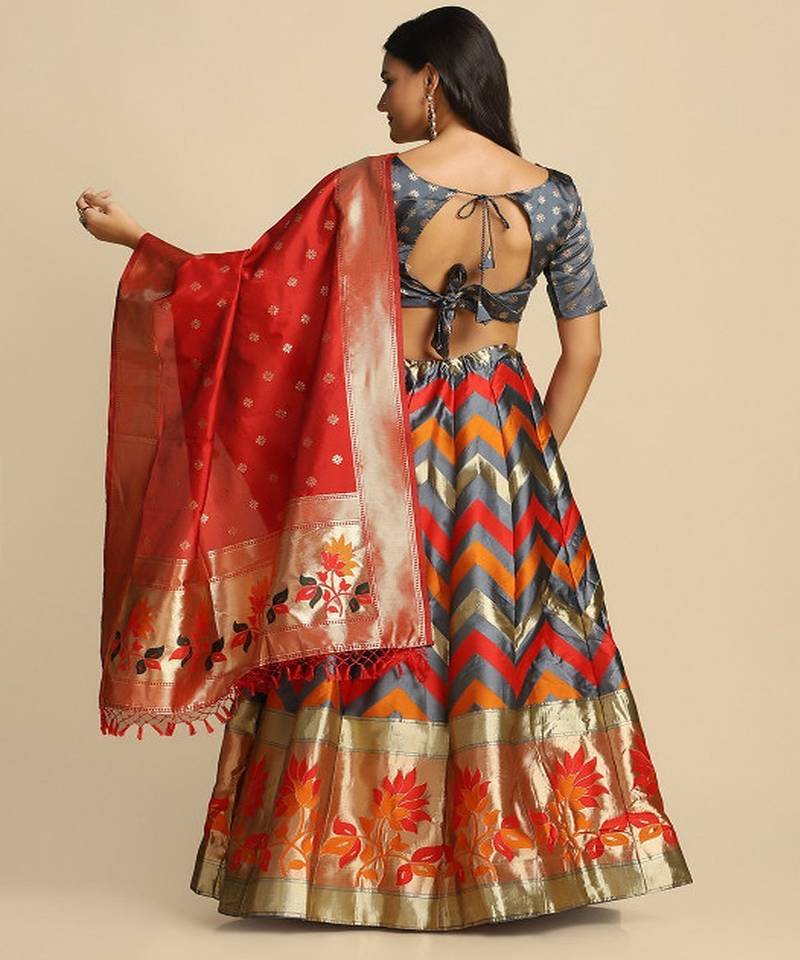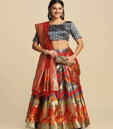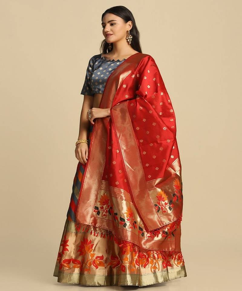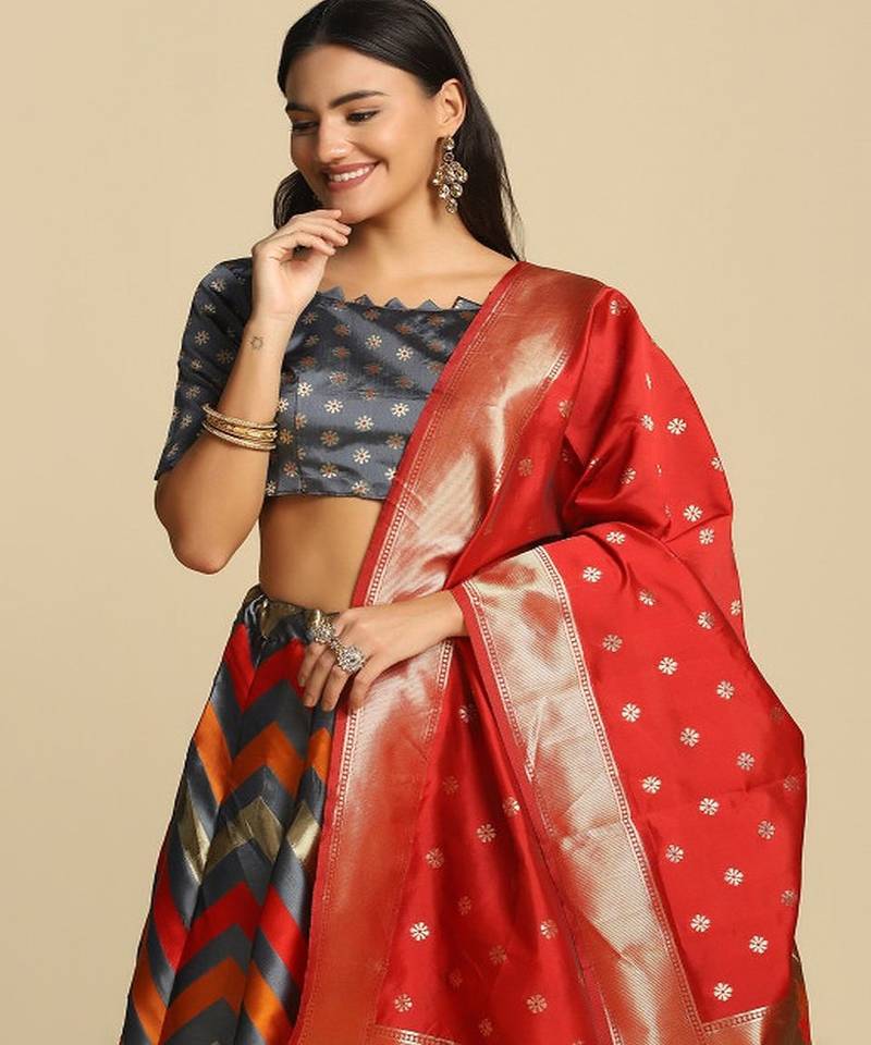 Woven designed semi stitched lehenga & unstitched blouse with dupatta