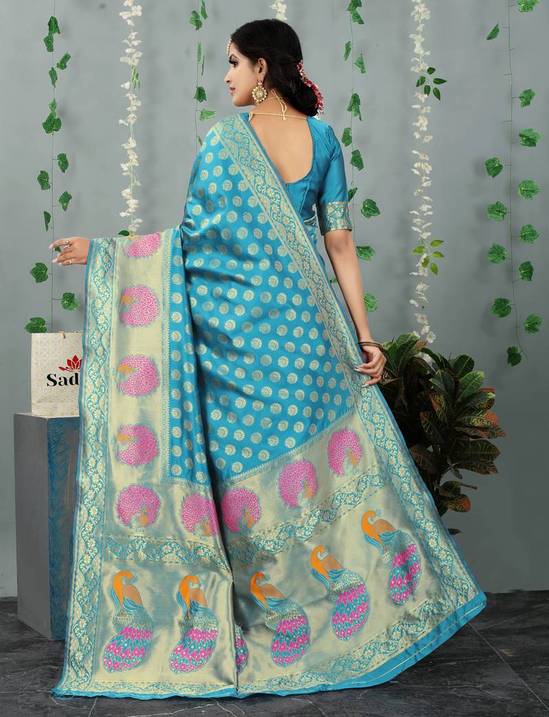 | Product Name | Aqua Blue Woven Banarasi Silk Saree With Blouse | |