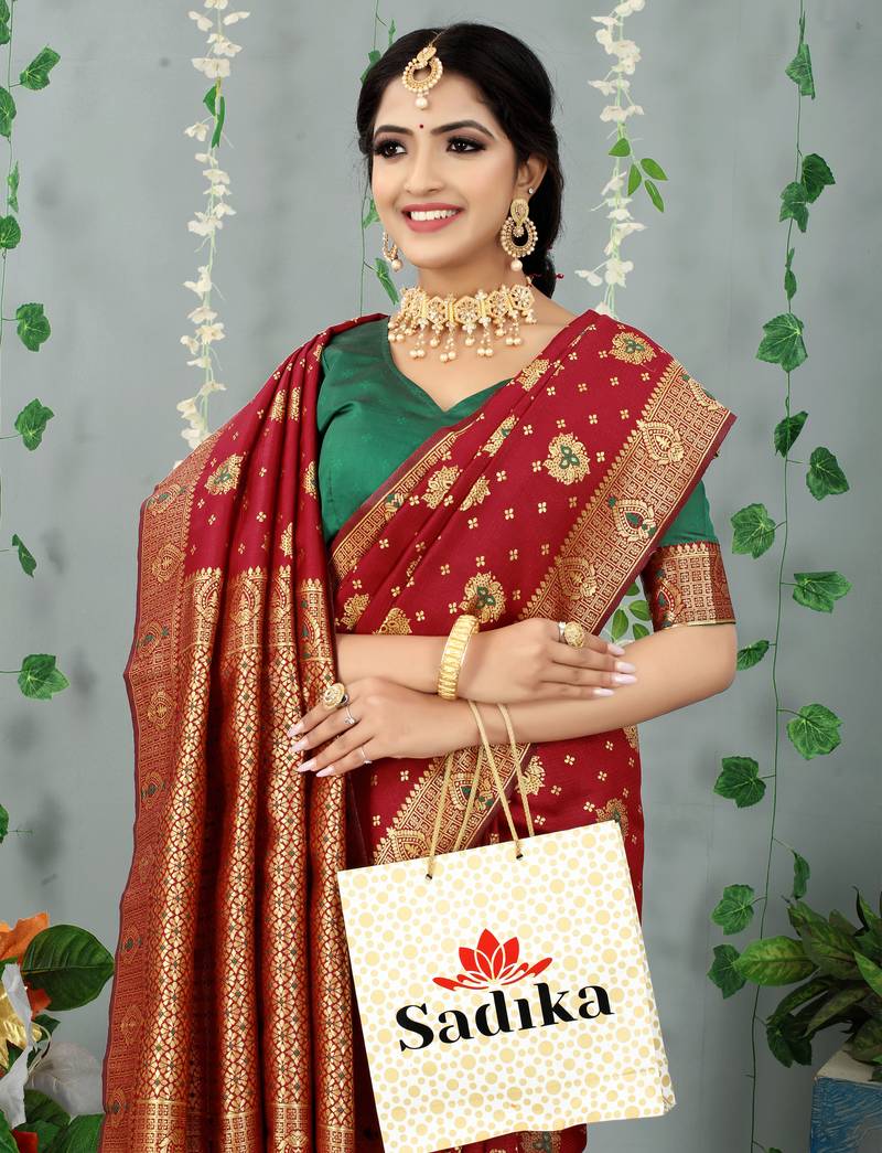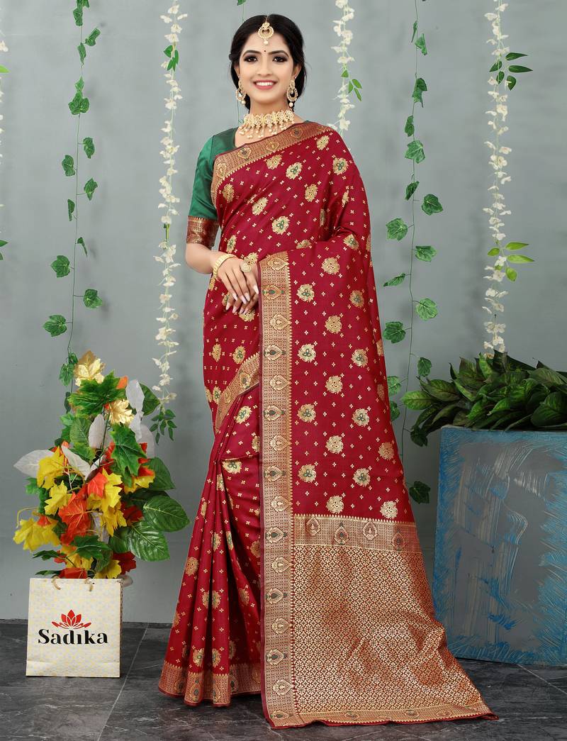 | Product Name | Maroon Woven Banarasi Silk Saree With Blouse | |