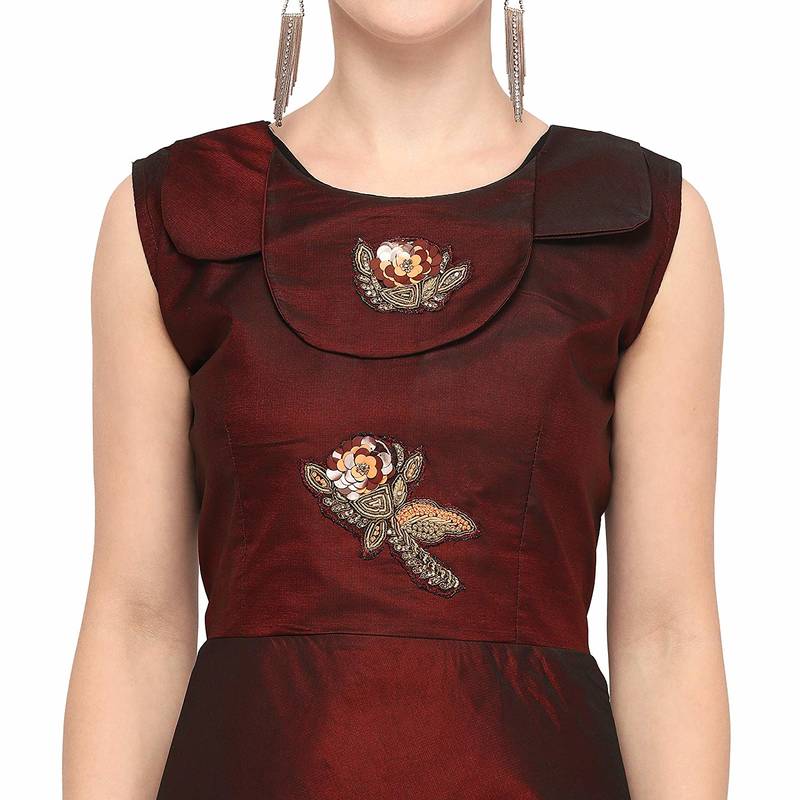 | Product Name | Designer Maroon Gown For Women Party Wear In Patch Worl | |