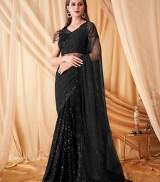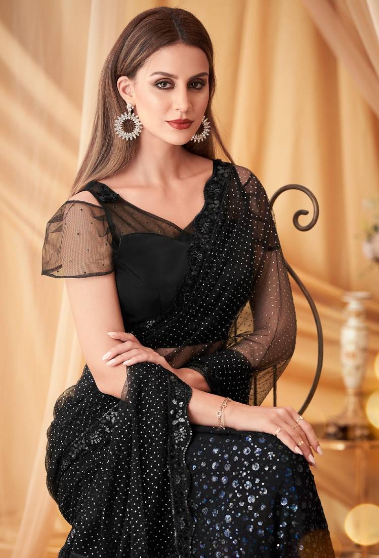 Black sequins beads net georgette heavy work special party wedding saree with blouse