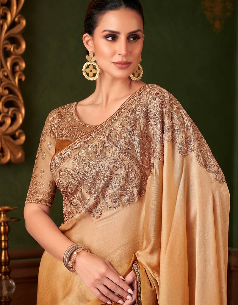 | • | Saree | : | Color- Golden / Fabric- Satin |