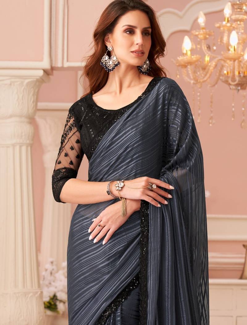 | Product Name | Grey Georgette Designer Lace Border Saree With Heavy Work Blouse For Wedding Party | |