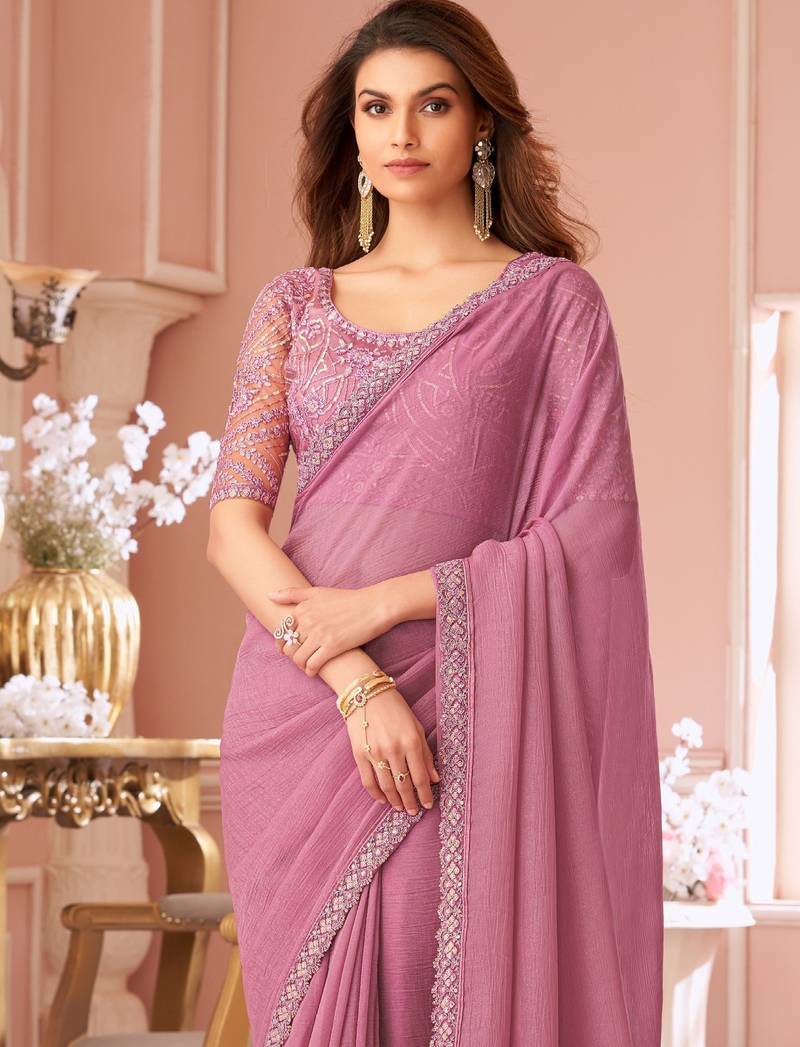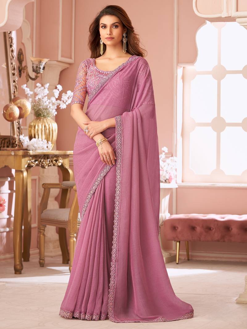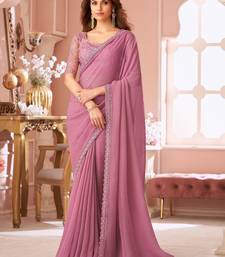 Onion pink georgette designer lace border saree with heavy work blouse for wedding party