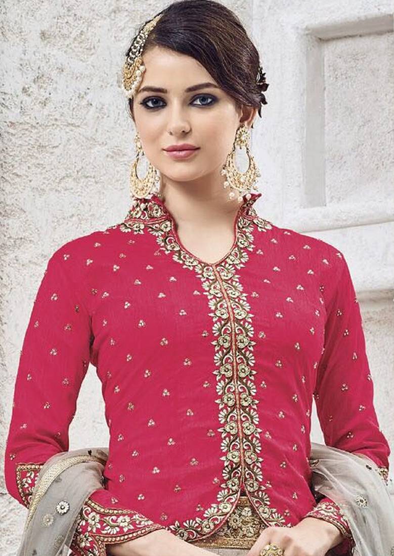 Pink embroidered silk salwar semi stitched