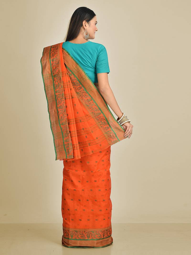 | Product Description | Orange & Green Pure Cotton Woven Design Taant Saree |