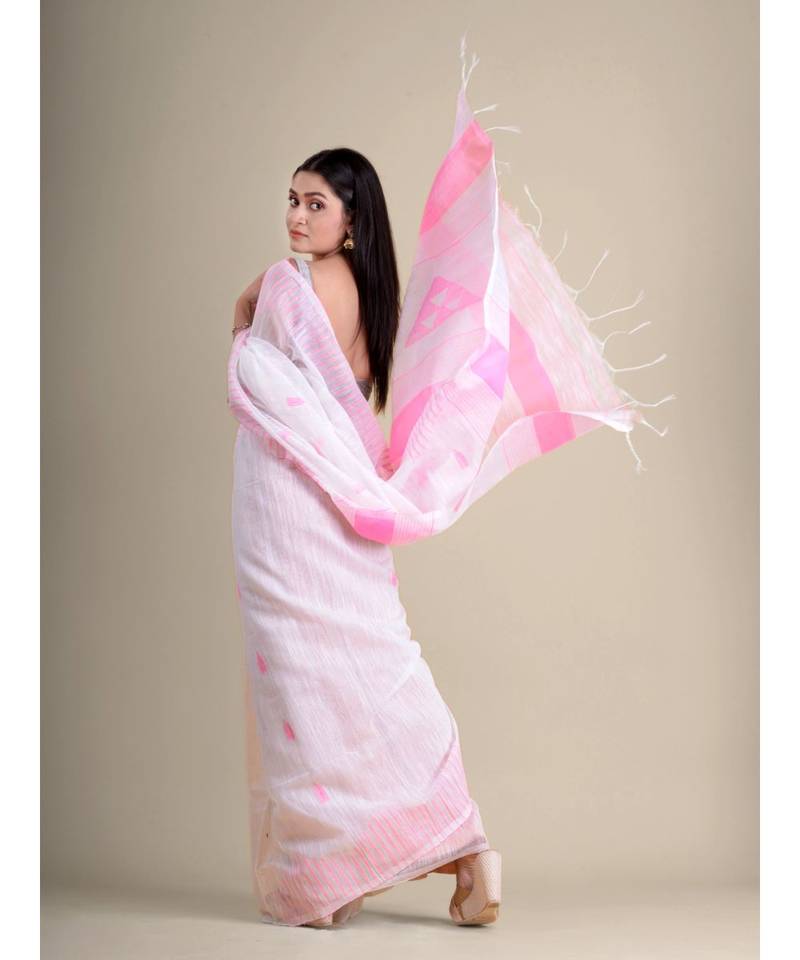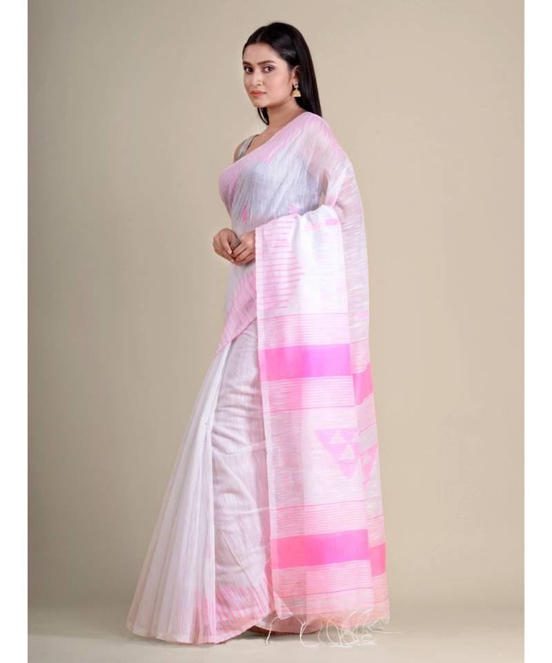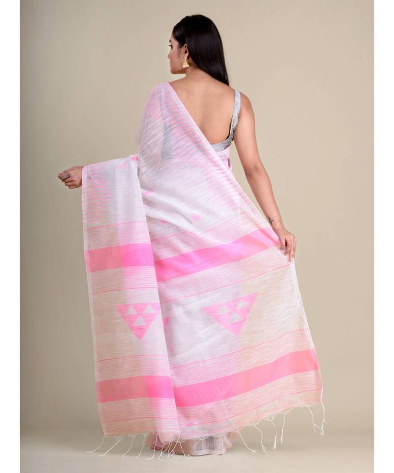 White handwoven soft blended cotton saree