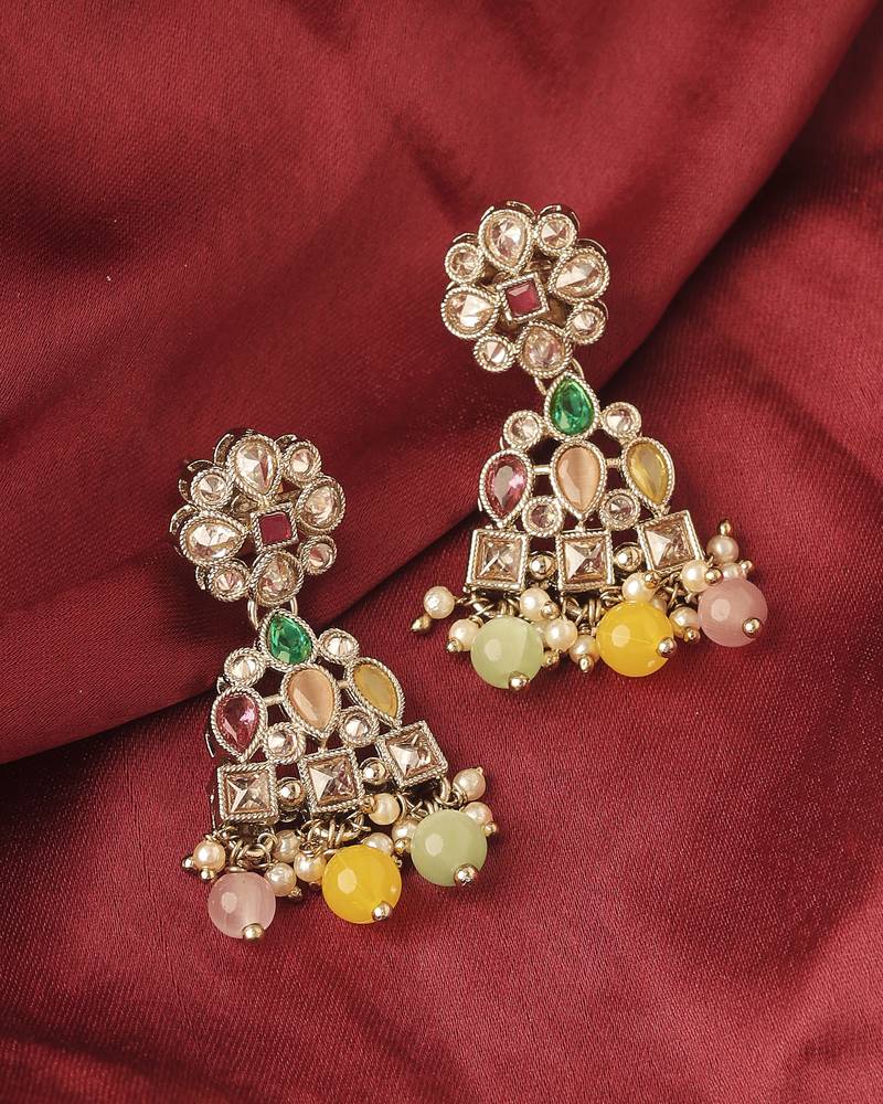Product Name | Beautiful Pear And Round Shape Gold Plated Multi Kundan Stone Dangle Earring For Women And Girls | |