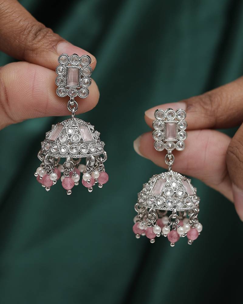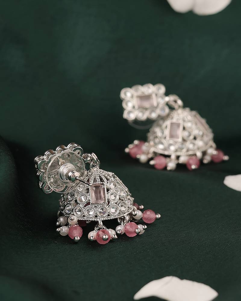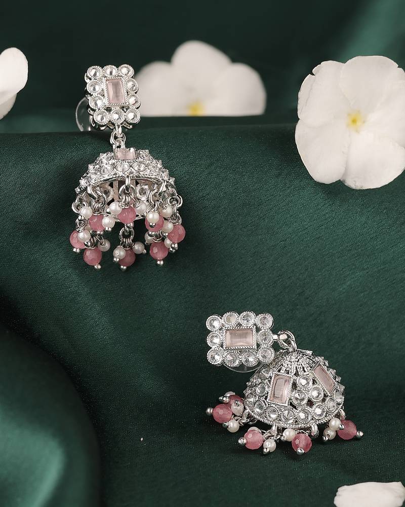 Product Name | Dazzling Square Shape Silver Plated Pink Kundan Stone Jhumki Earring For Women And Girls | |