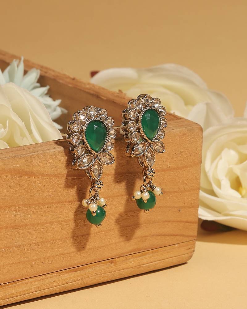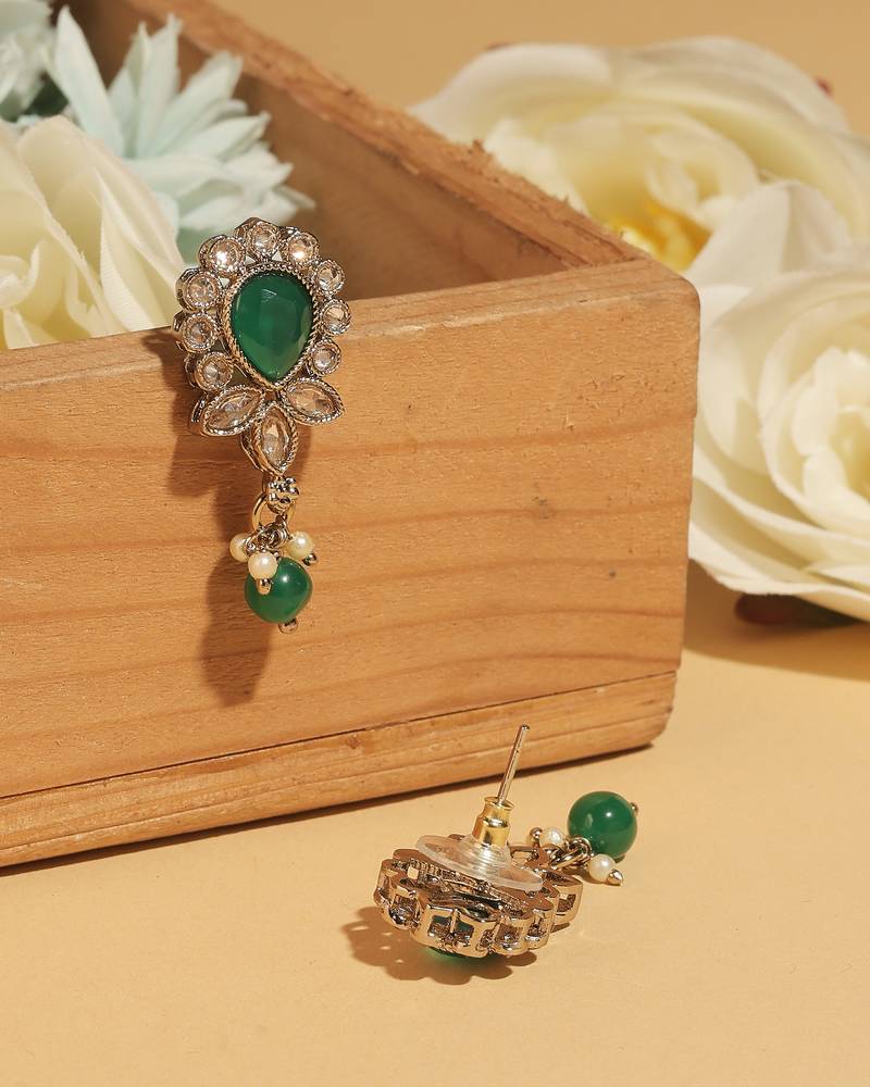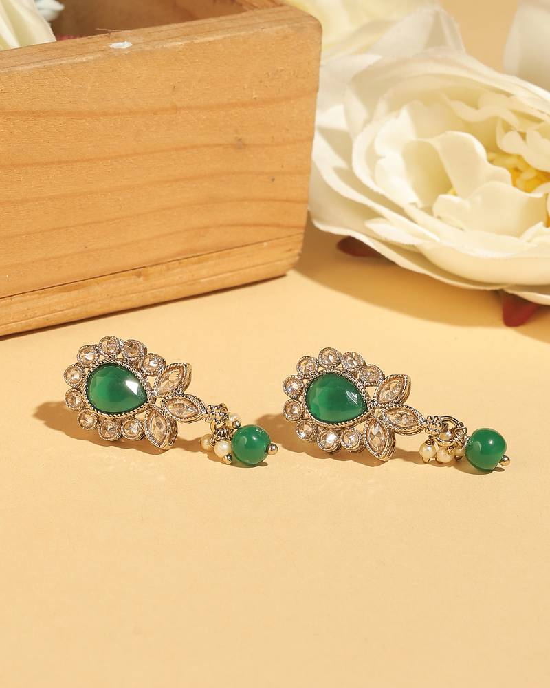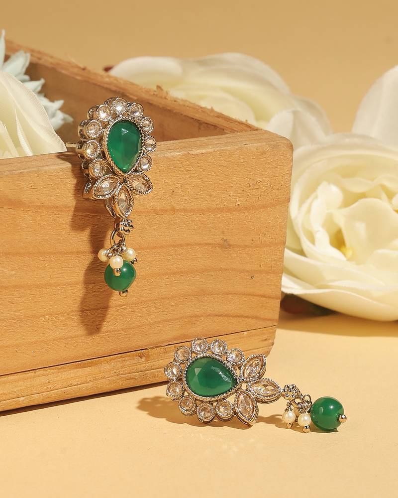 Product Name | Ethnic Oval And Leaf Design Gold Plated Green Kundan Stone Dangle Earring For Women And Girls | |