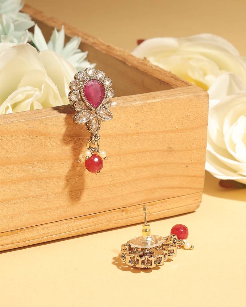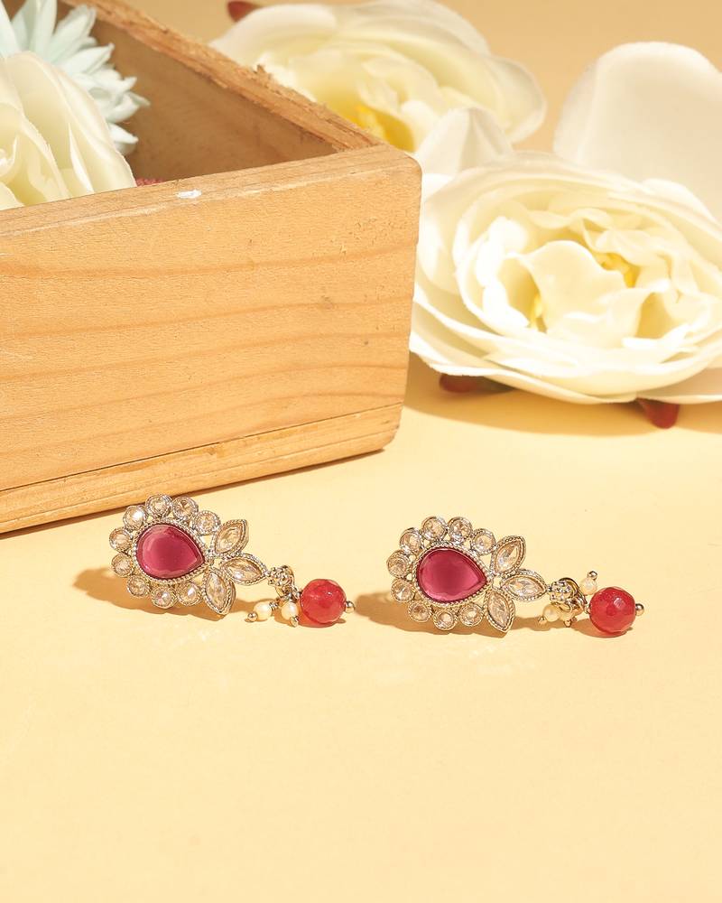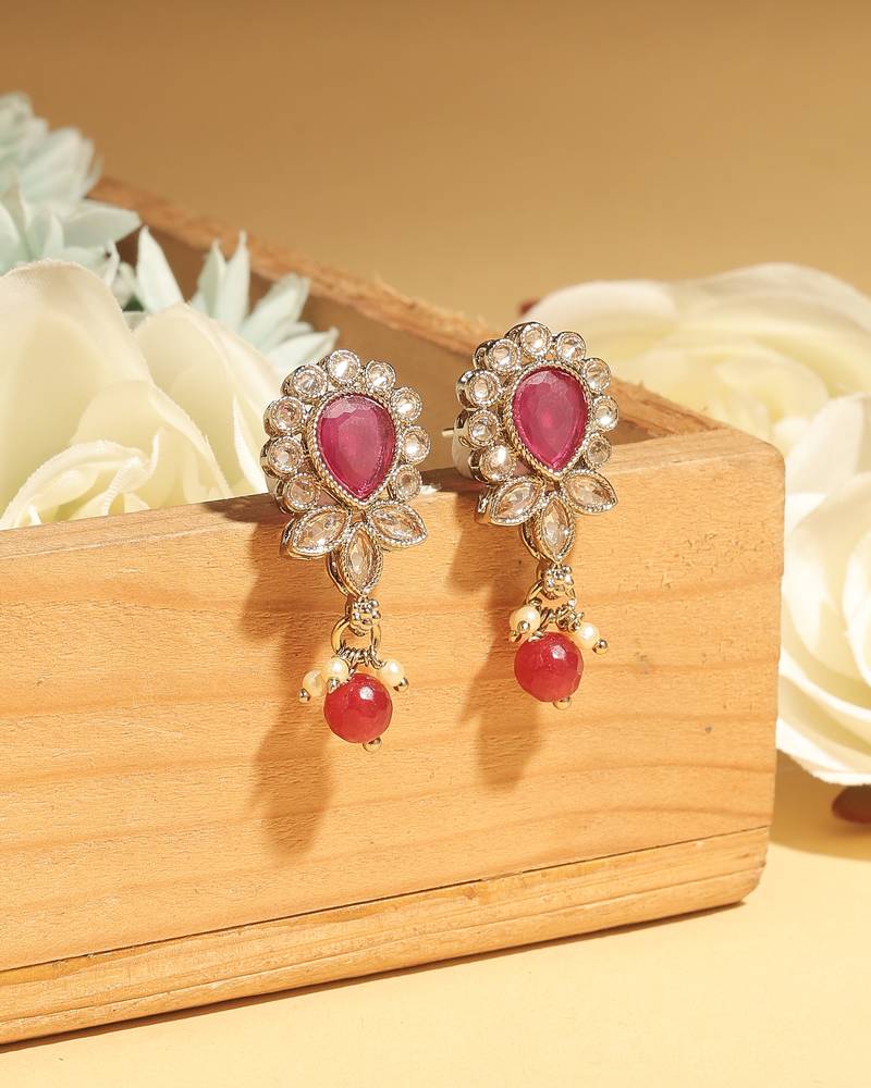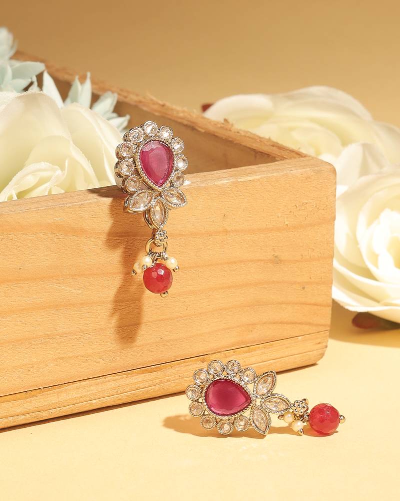 Product Name | Excellent Oval And Leaf Design Gold Plated Ruby Kundan Stone Dangle Earring For Women And Girls | |
