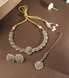 | Product Description | This Saloni Fashion Jewellery Trendy Flower Shape Pearl Brown Kundan Stone Antique Gold Plated Choker Necklace Set With Maang Tikka For Women And Girls Is Made Of Alloy Will Give You Astonishing Charm And Super Comfort.