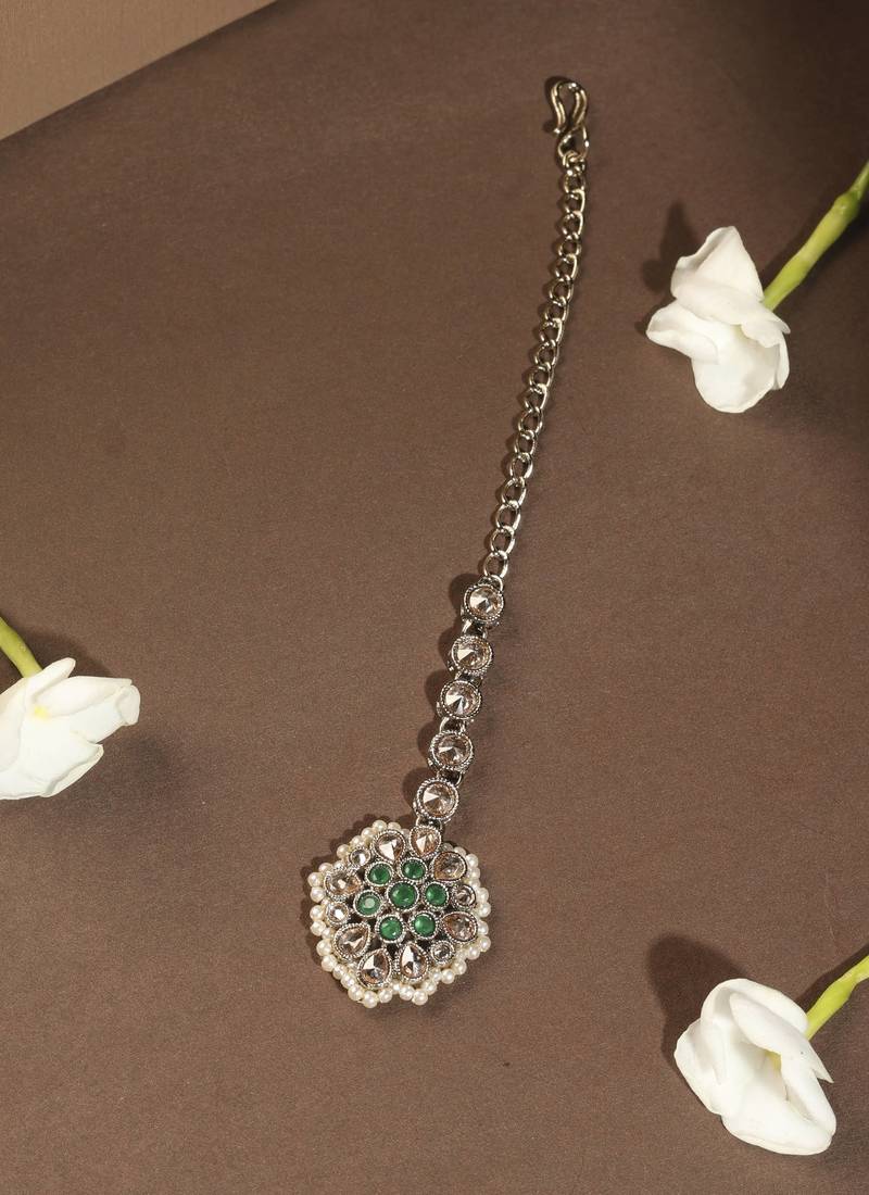 | Product Name | Flower Shape Pearl Green Kundan Stone Gold Plated Choker Necklace Set With Maang Tikka For Women | |