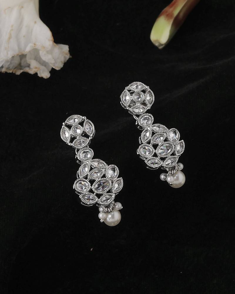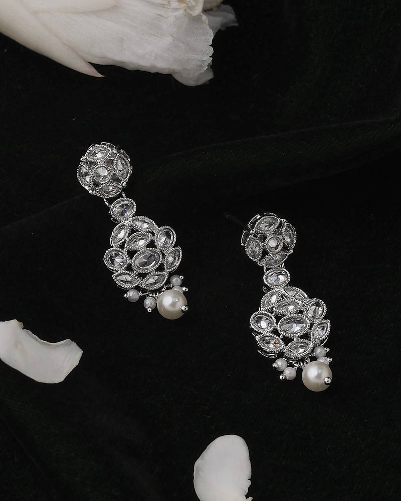 Product Name | Lavish Round Shape Silver Plated White Pearl Kundan Stone Dangle Earring For Women And Girls | |