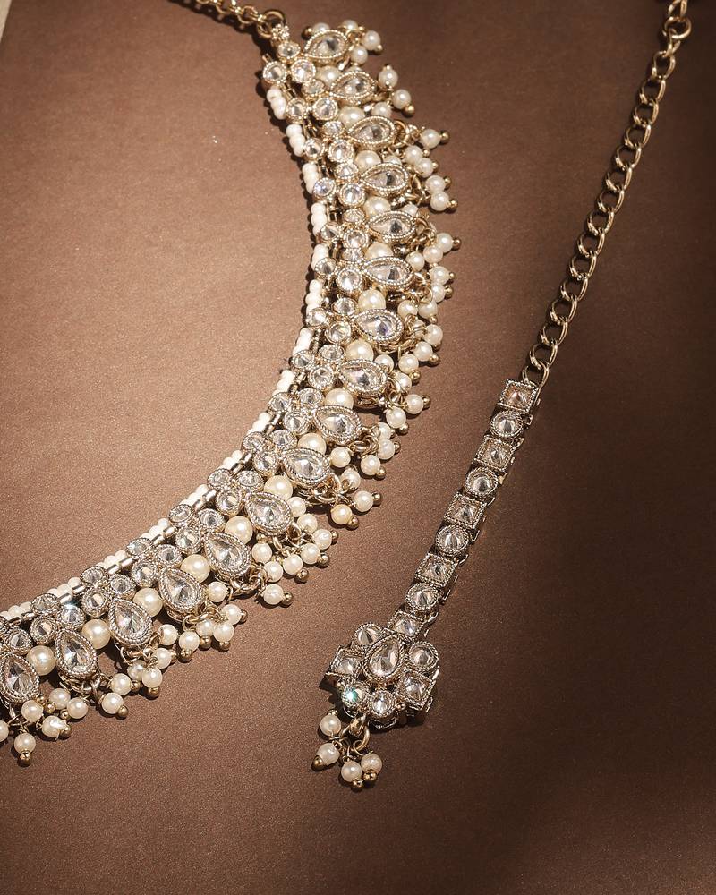 Product Description | This Saloni Fashion Jewellery Glorious Pear Shape Pearl Guchha Antique Gold Plated White Uncut Kundan Stone Choker Necklace Set With Maangtikka For Women And Girls Is Made Of Alloy Will Give You Astonishing Charm And Super Comfort.