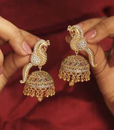 Pleasant peacock design gold plated cz studded brass jhumki earring for women and girls