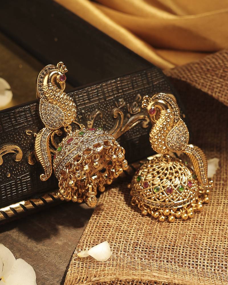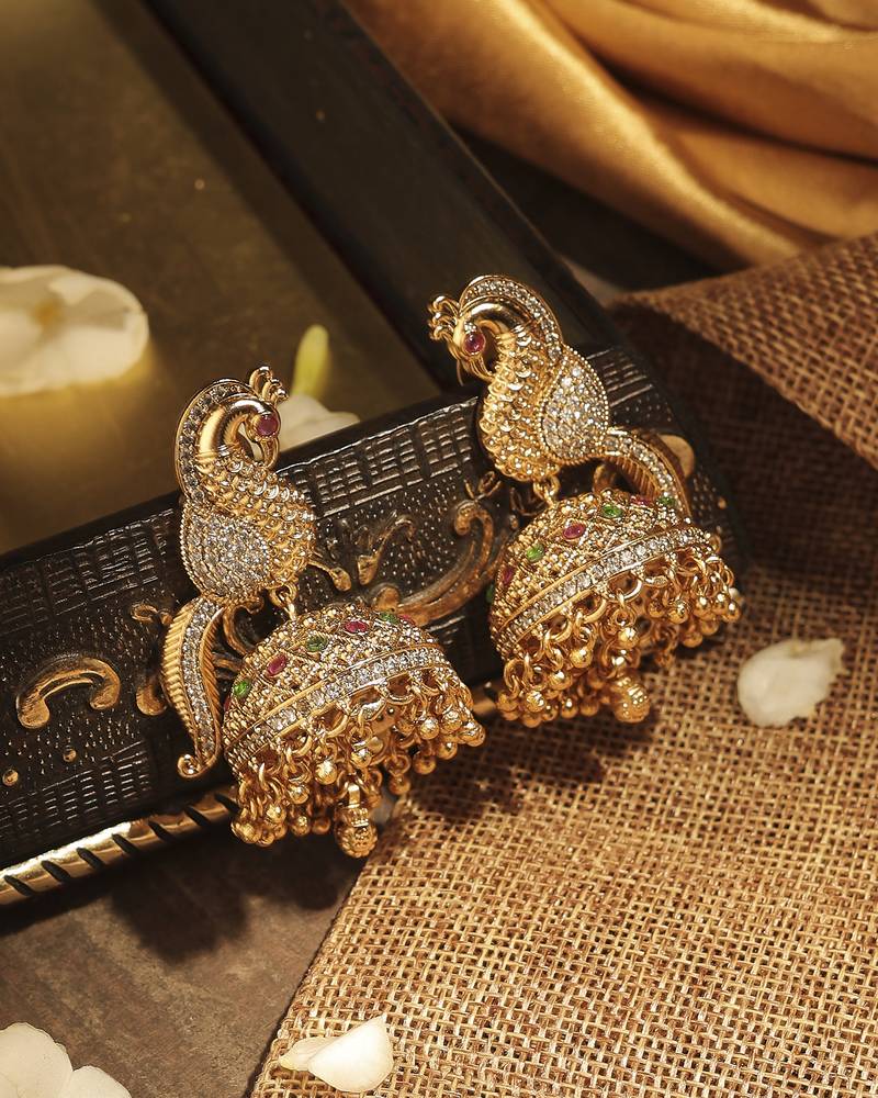 Product Name | Pleasant Peacock Design Gold Plated Cz Studded Brass Jhumki Earring For Women And Girls | |