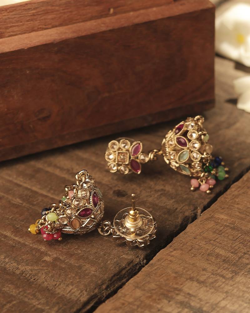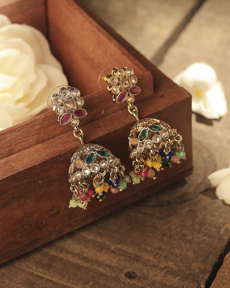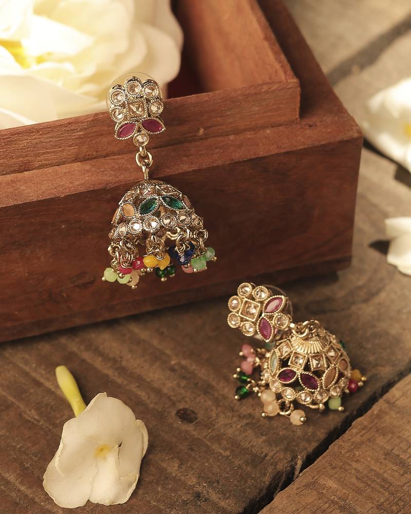 Product Name | Round & Pear Shape Silver Plated Pearl Multi Kundan Stone Jhumki Earring For Women & Girls | |