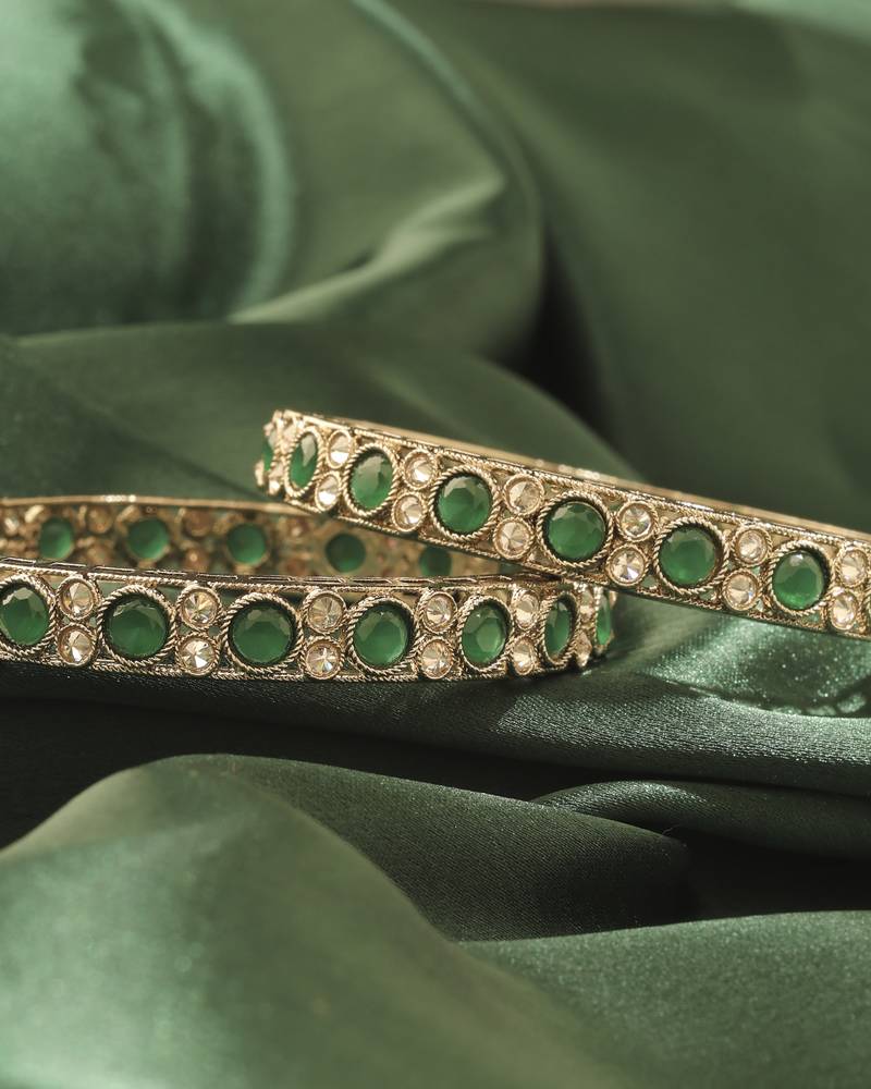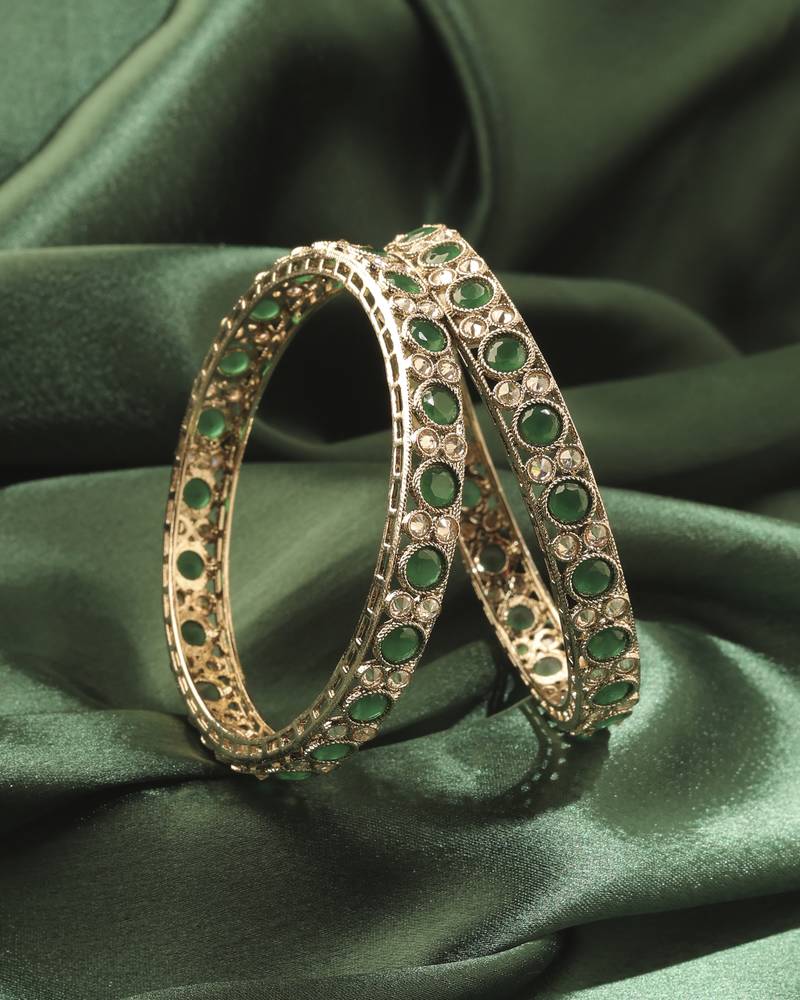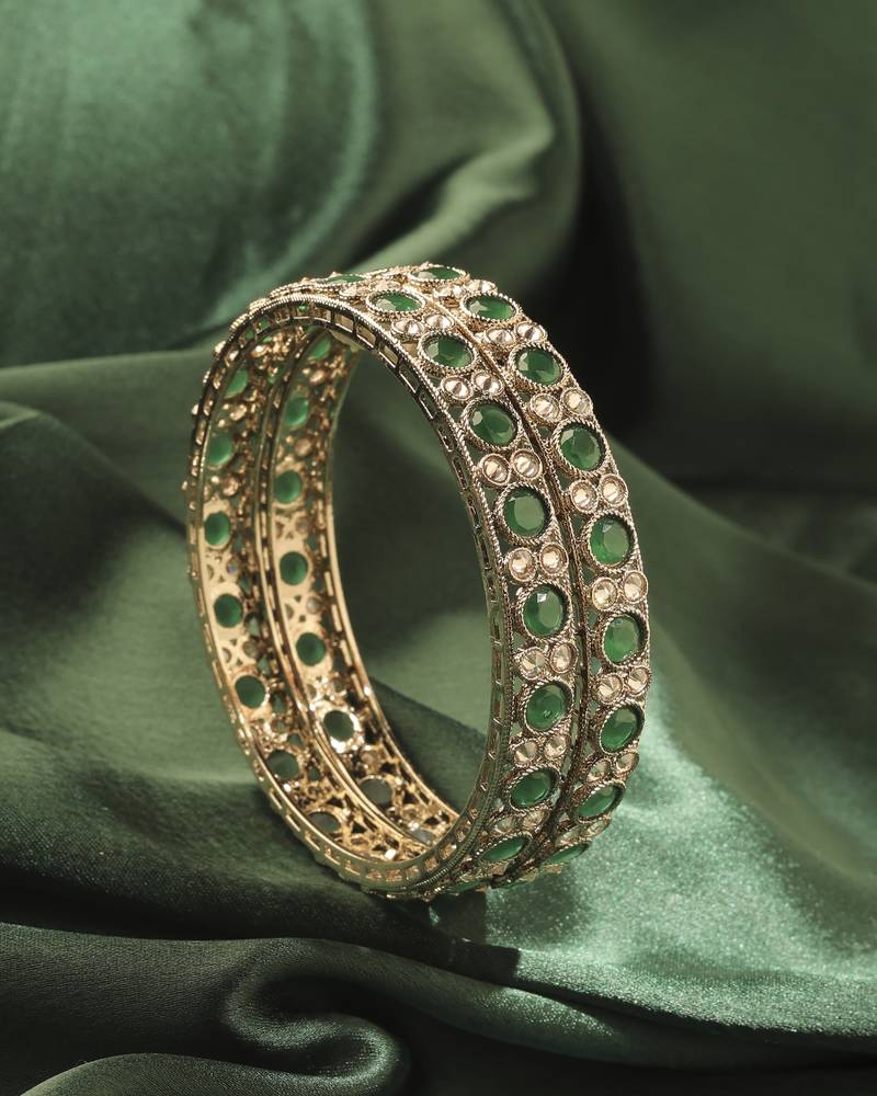 Product Name | Round Shape Antique Gold Plated Green Uncut Kundan Stone Set Of 2 Bangle Set For Women And Girls | |
