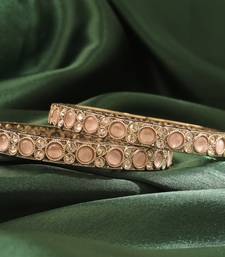 Round shape antique gold plated pink uncut kundan stone set of 2 bangle set for women and girls
