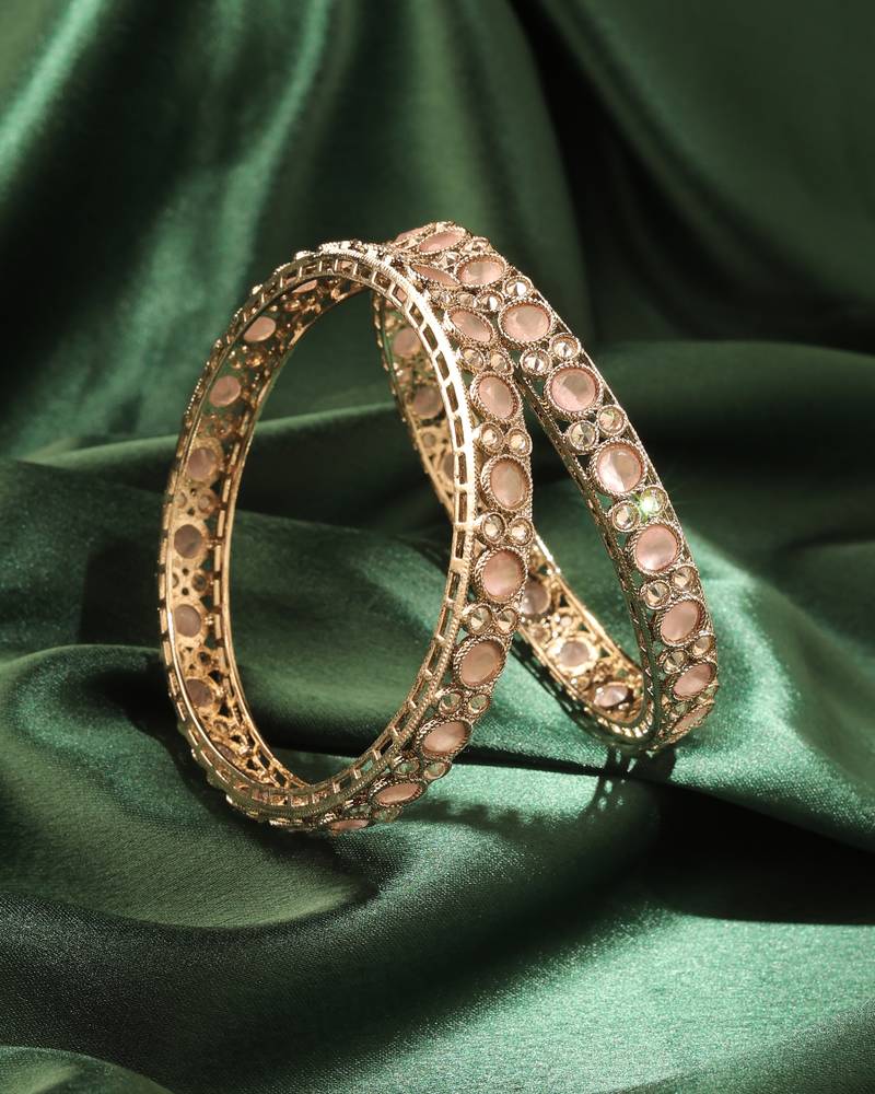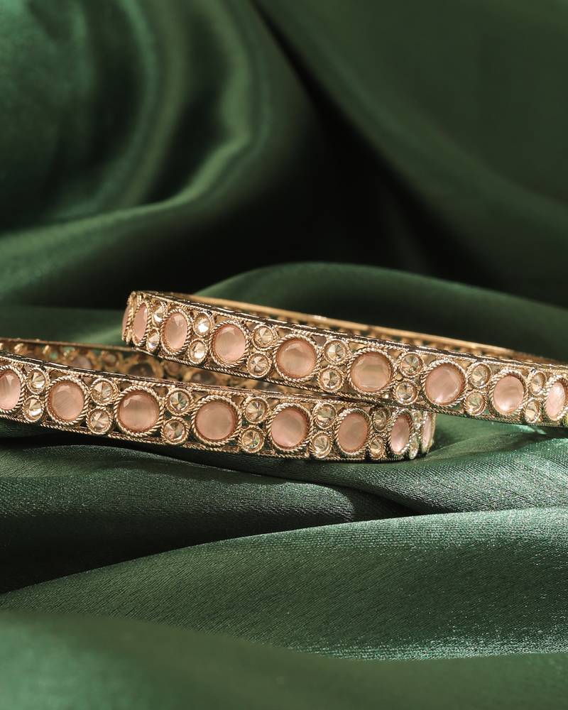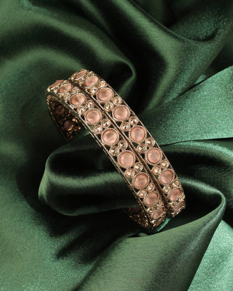 Product Name | Round Shape Antique Gold Plated Pink Uncut Kundan Stone Set Of 2 Bangle Set For Women And Girls | |