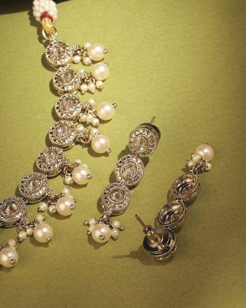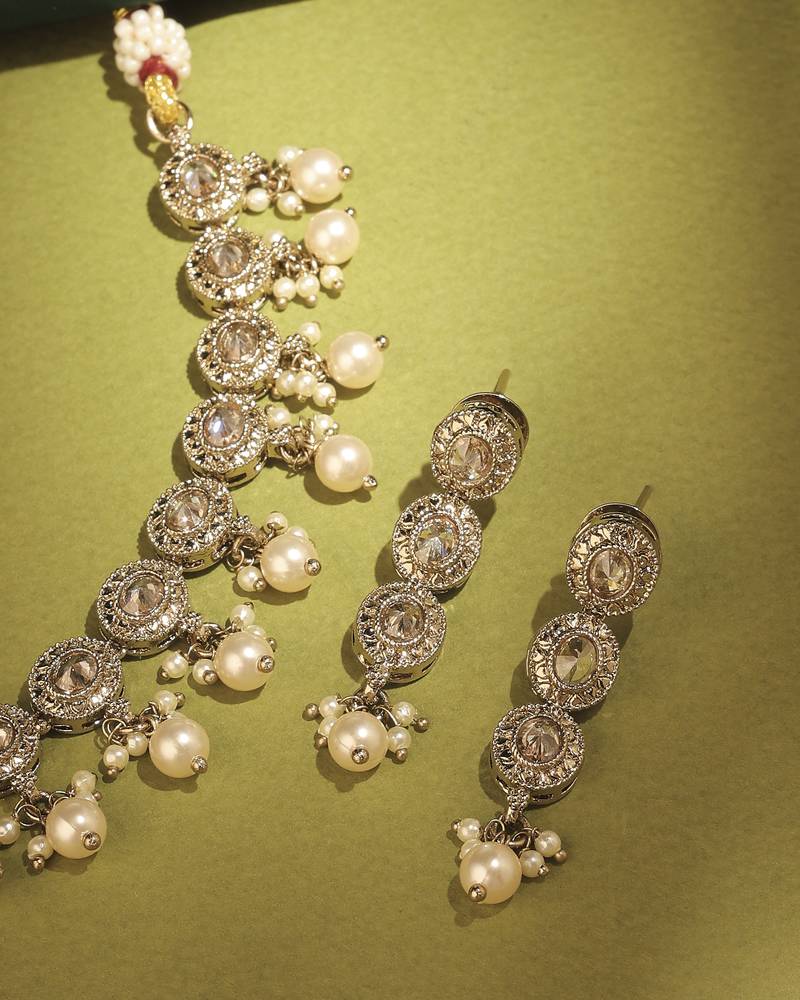 Product Name | Round Shape Pearl Guchha Antique Gold Plated Brown Kundan Stone Brass Choker Necklace Set For Women | |
