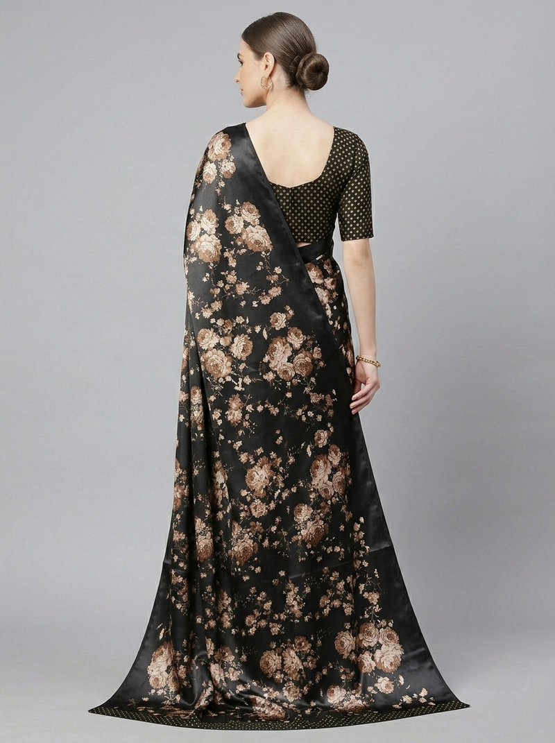 | Product Name | Black Printed Satin Saree With Blouse Piece | |