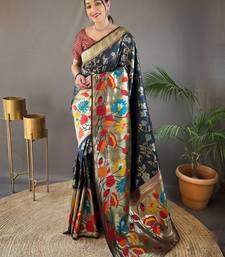 Black woven paithani silk saree with blouse piece