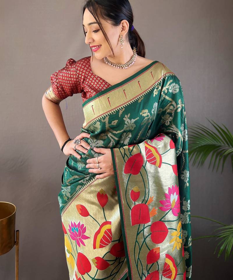 Product Name | Dark Green Woven Paithani Silk Saree With Blouse Piece | |