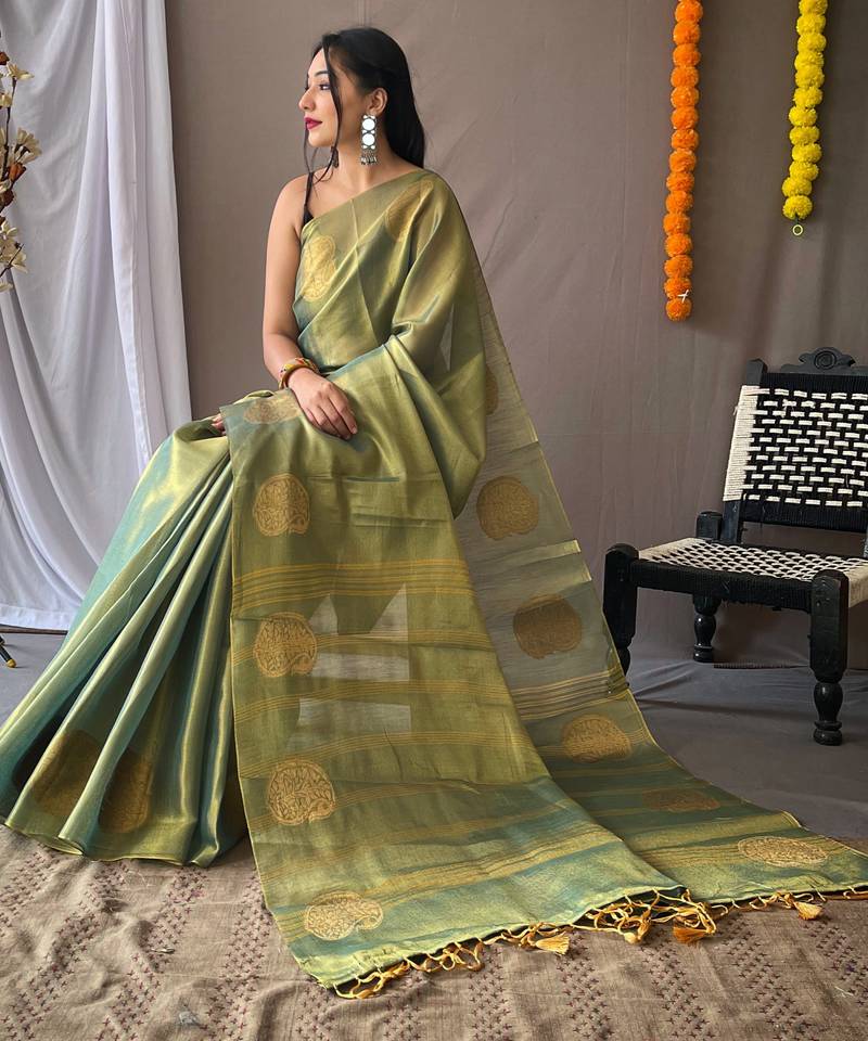Product Name | Green Woven Tissue Saree With Blouse Piece | |