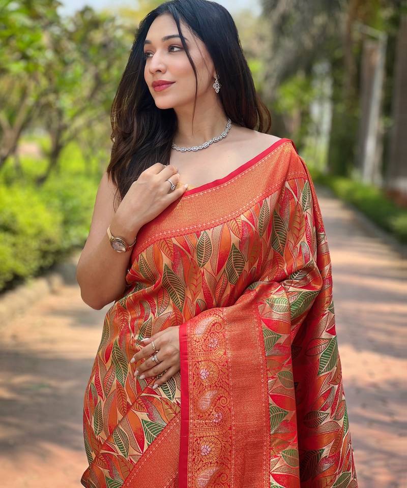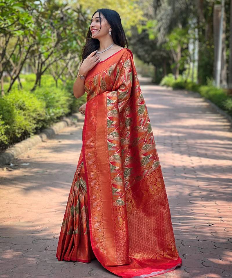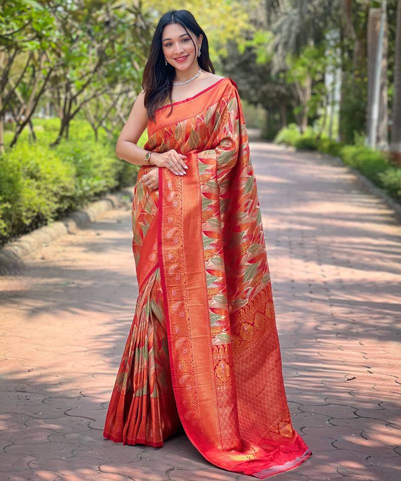 Product Name | Orange Woven Kanchipuram Silk Saree With Blouse Piece | |