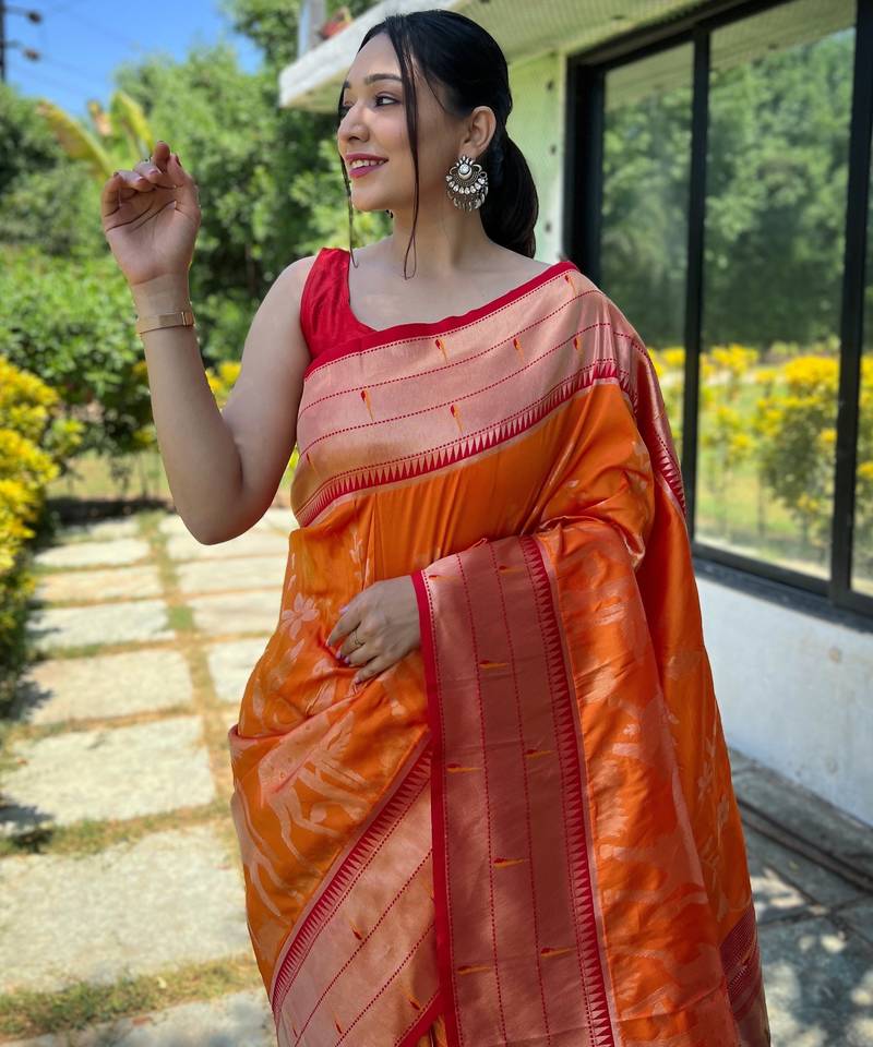 Product Name | Orange Woven Paithani Silk Saree With Blouse Piece | |