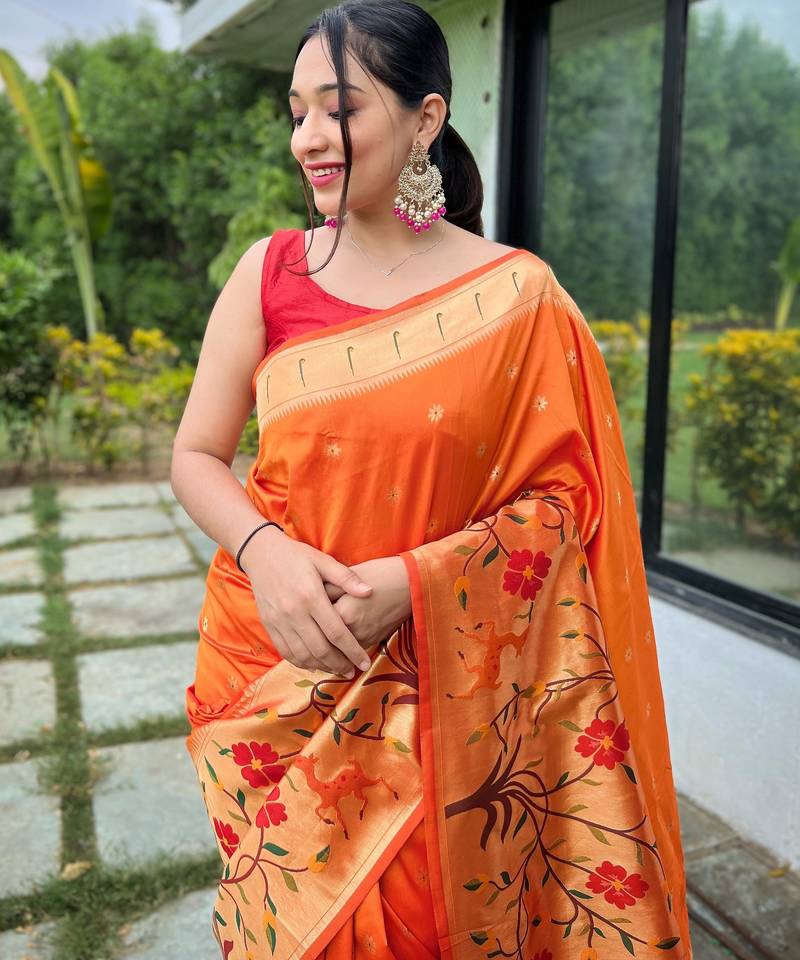 Product Name | Orange Woven Paithani Silk Saree With Blouse Piece | |