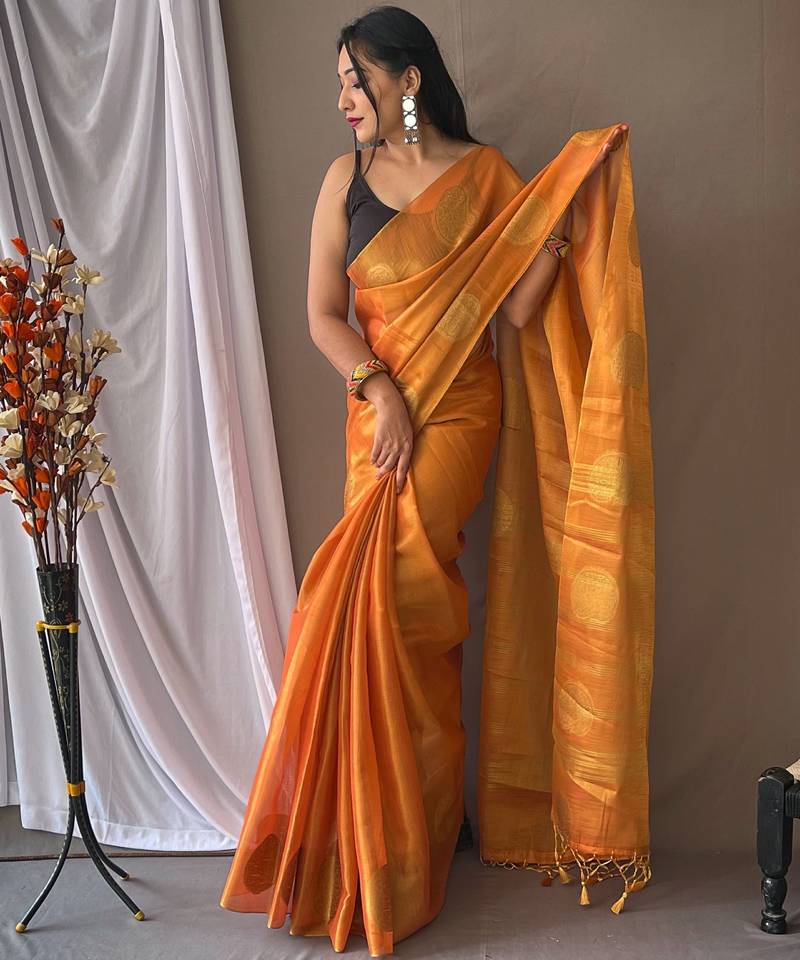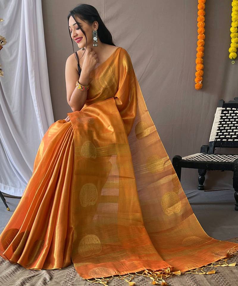 Product Name | Orange Woven Tissue Saree With Blouse Piece | |