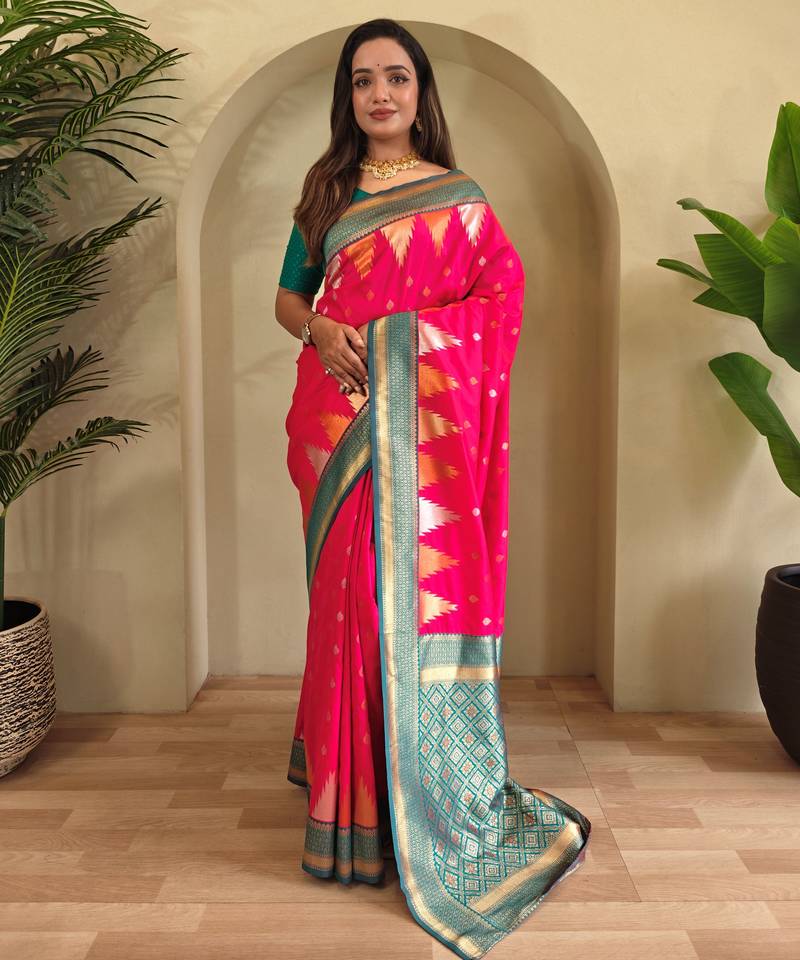Product Name | Pink Woven Kanchipuram Silk Saree With Blouse Piece | |