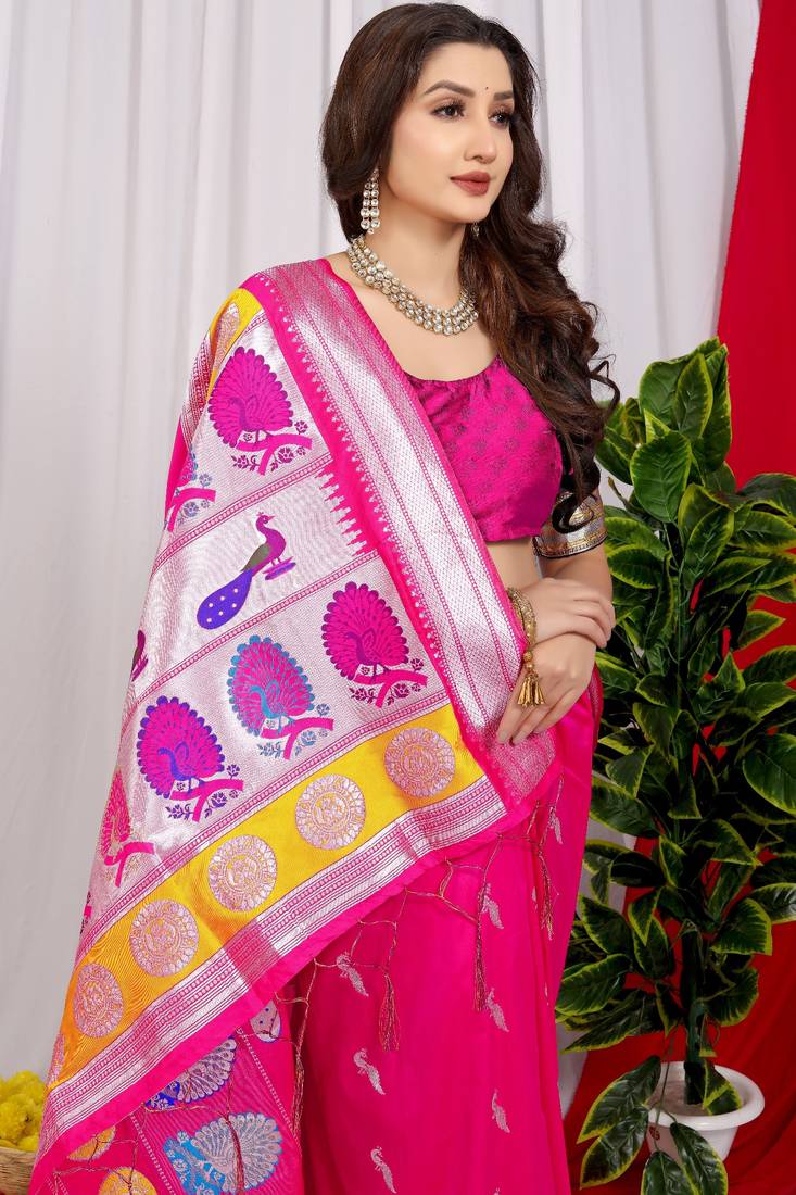 | Product Name | Pink Woven Paithani Silk Saree With Blouse | |