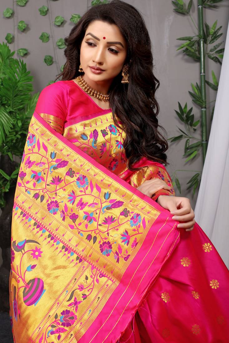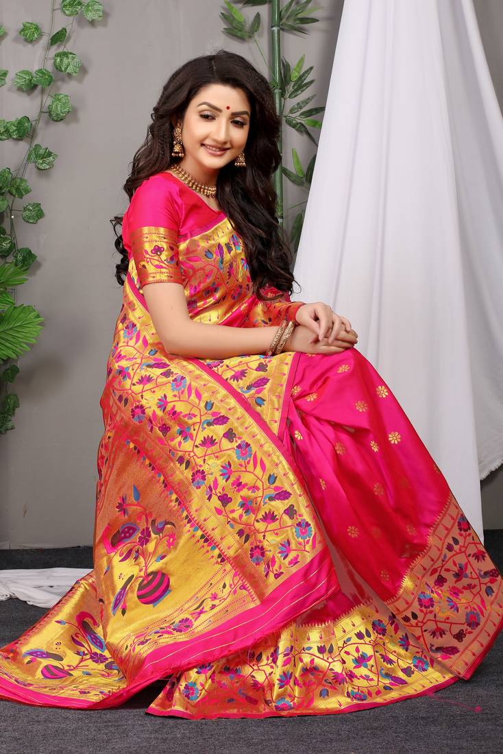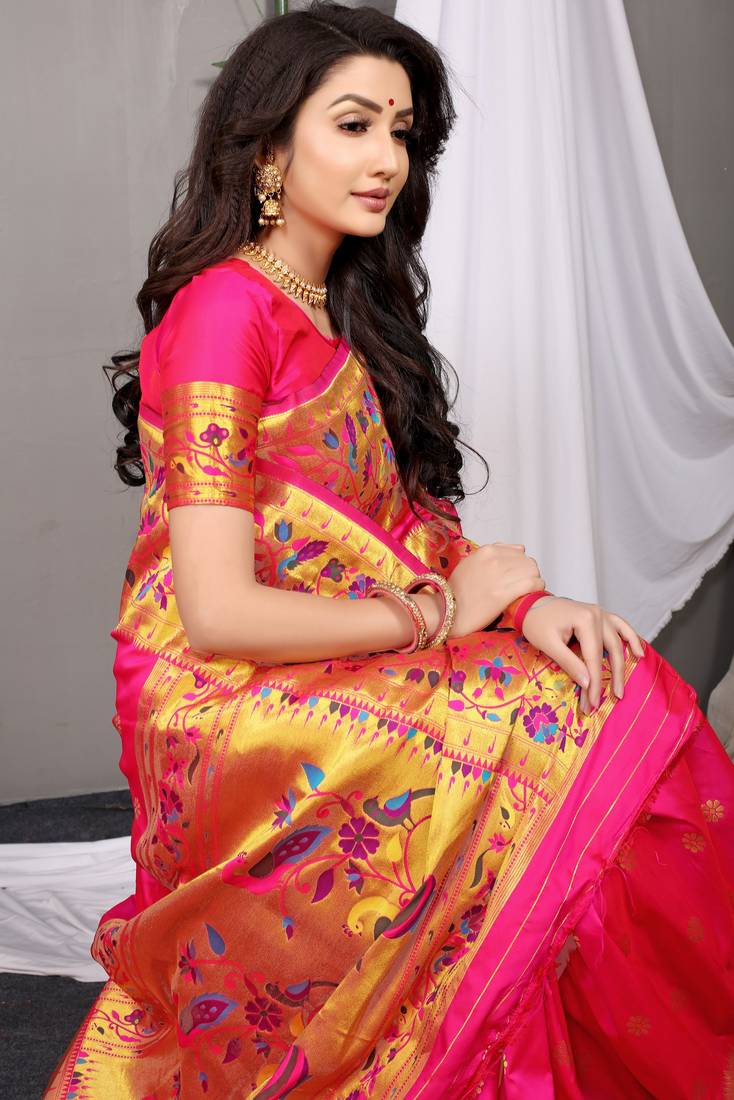 | Product Name | Pink Woven Paithani Silk Saree With Blouse | |
