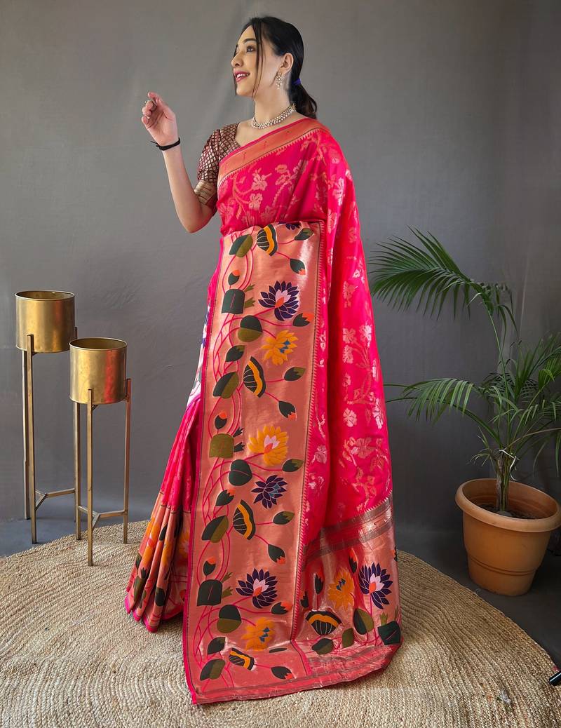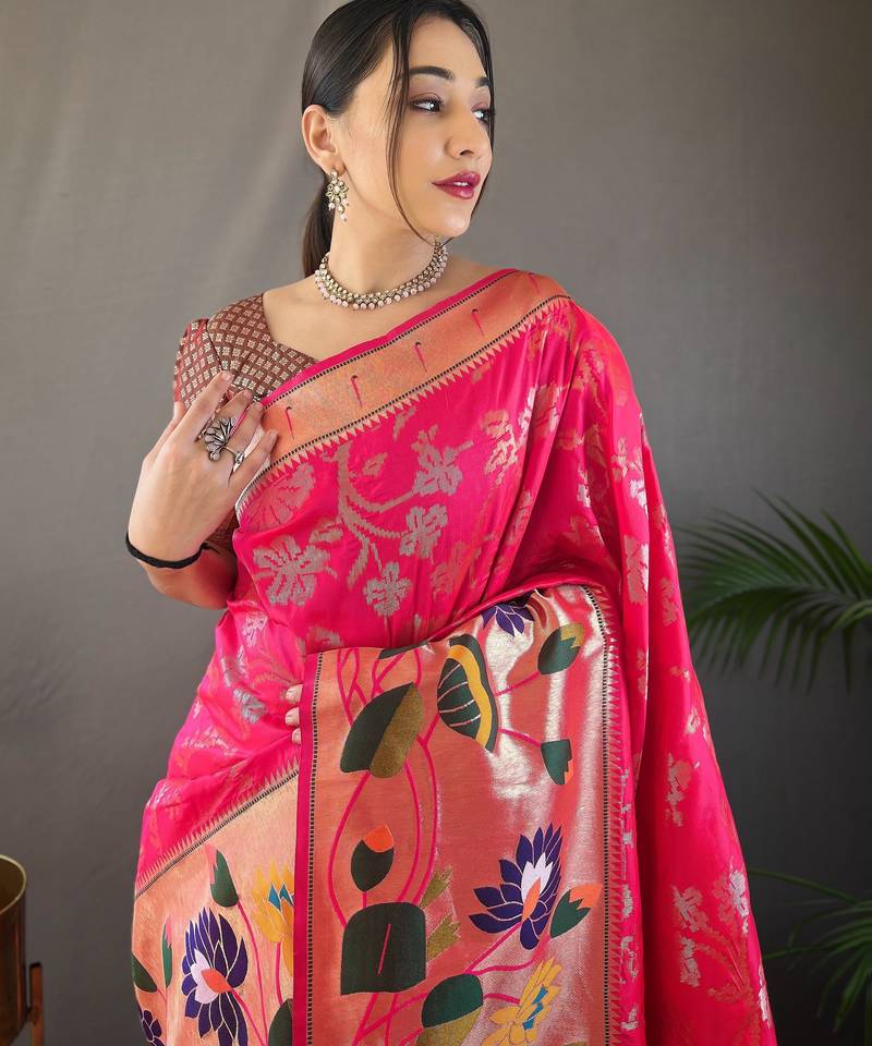 Product Name | Pink Woven Paithani Silk Saree With Blouse Piece | |