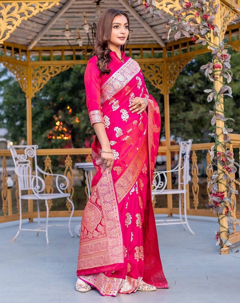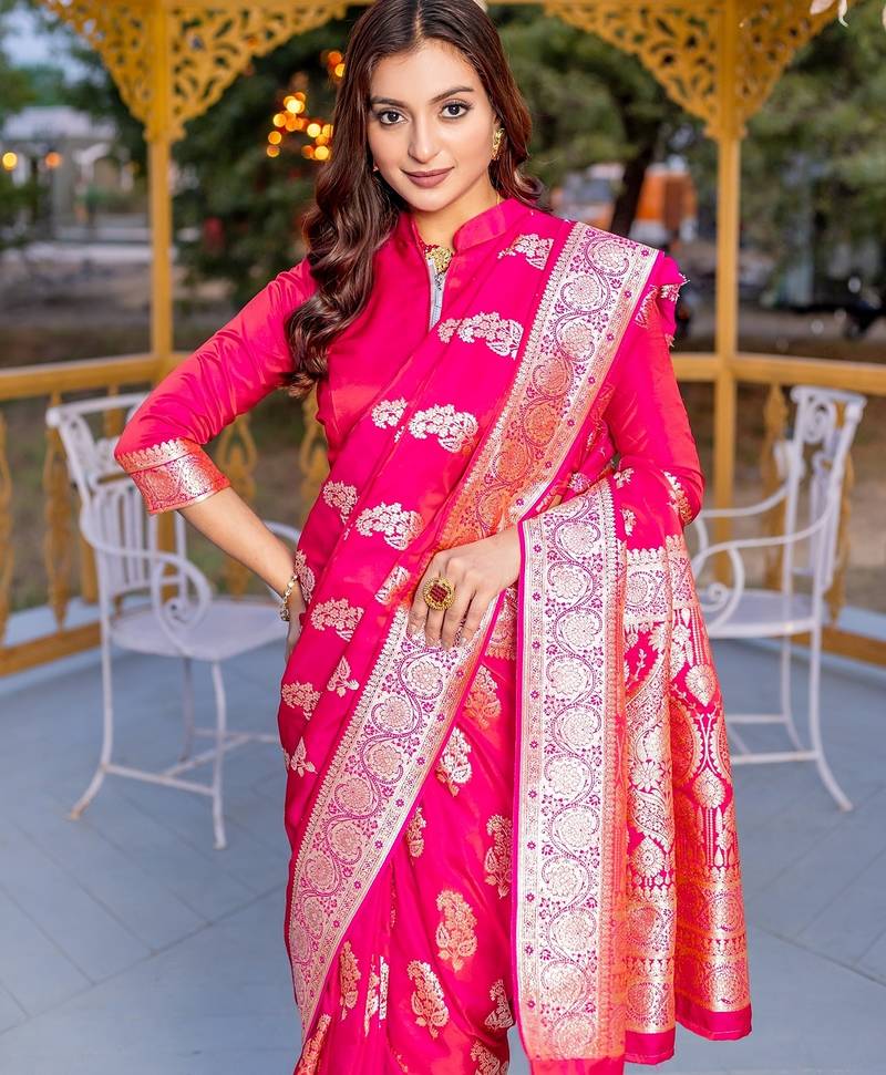 Product Name | Pink Woven Satin Saree With Blouse Piece | |
