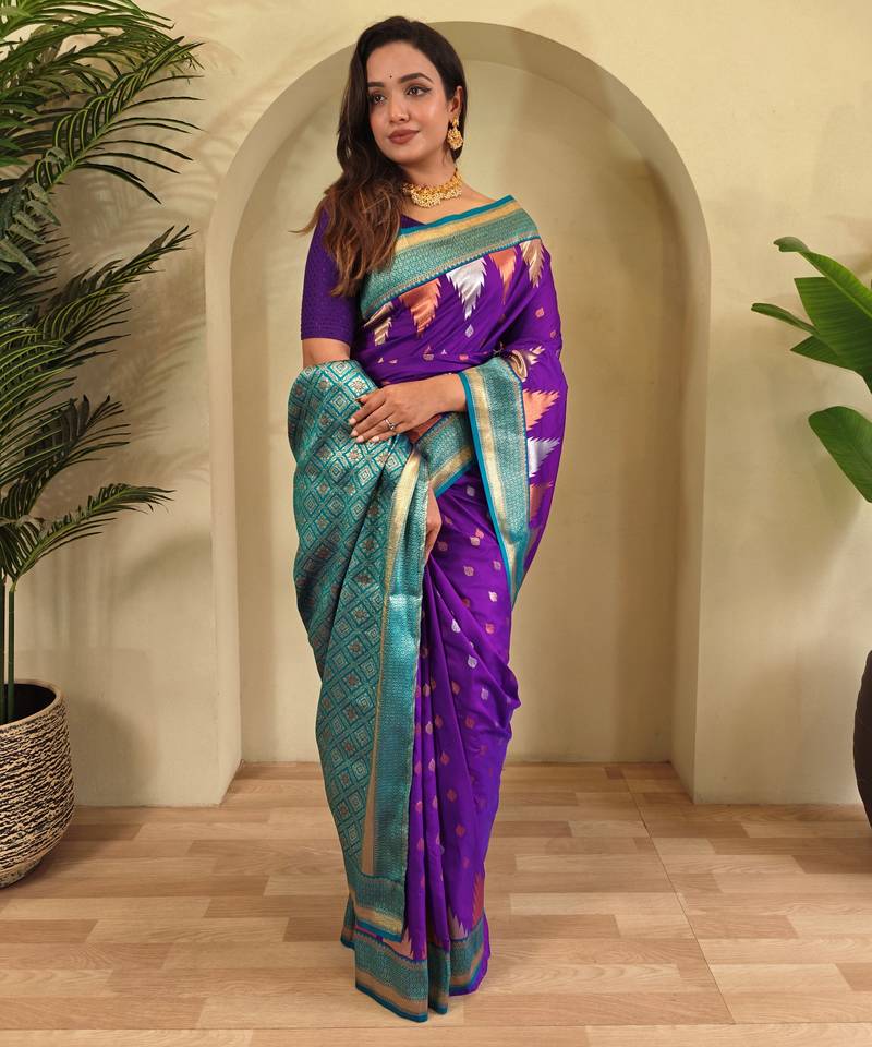 Product Name | Purple Woven Kanchipuram Silk Saree With Blouse Piece | |