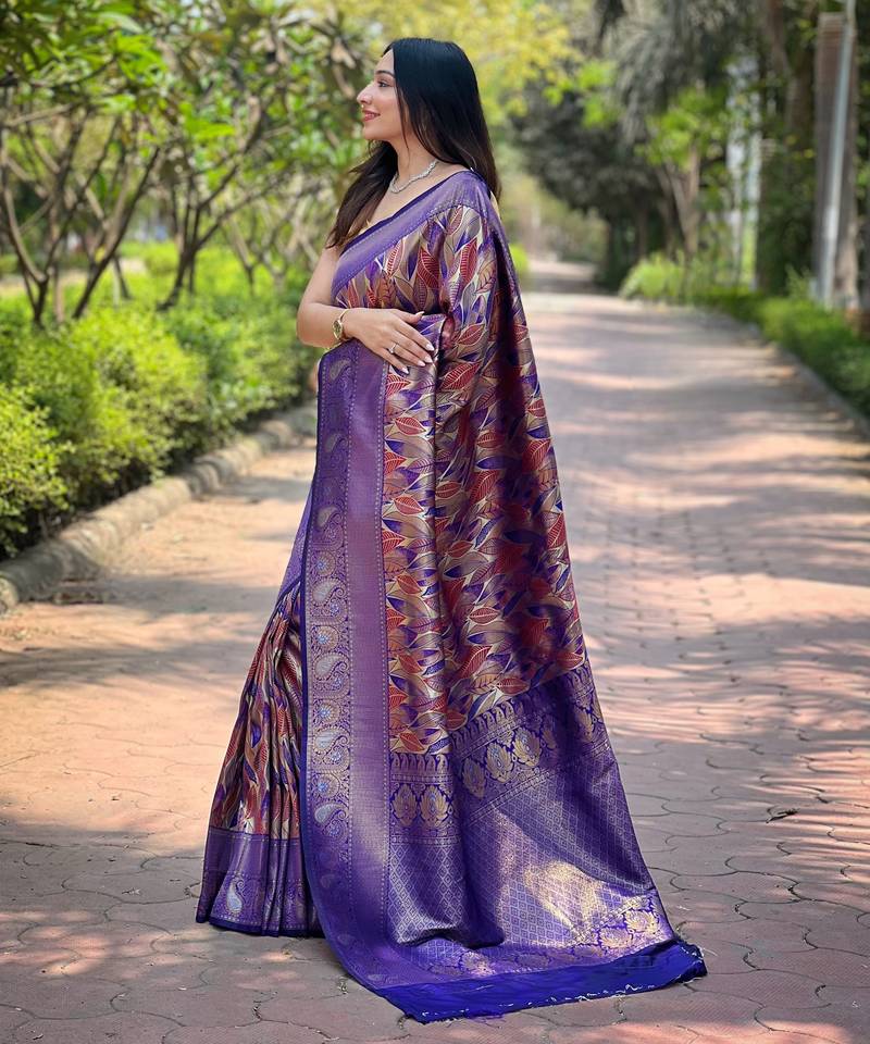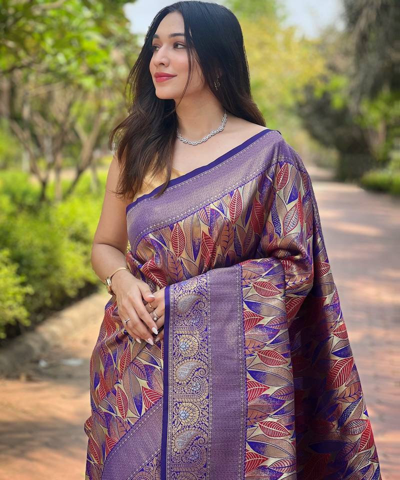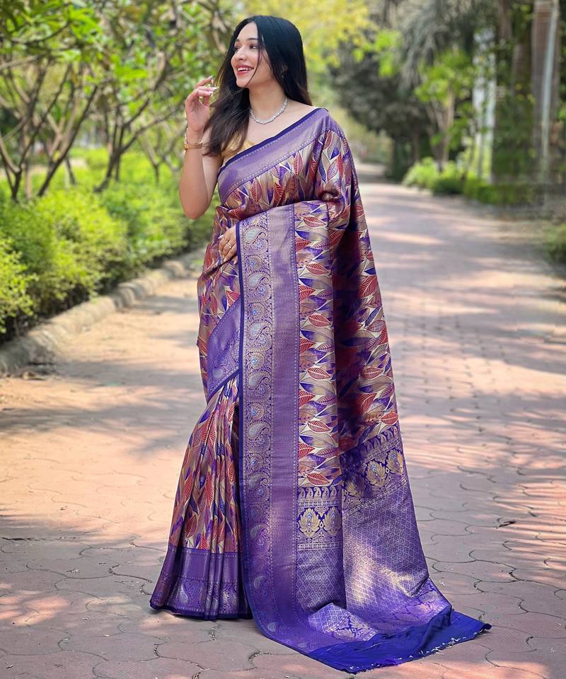 Product Name | Purple Woven Kanchipuram Silk Saree With Blouse Piece | |