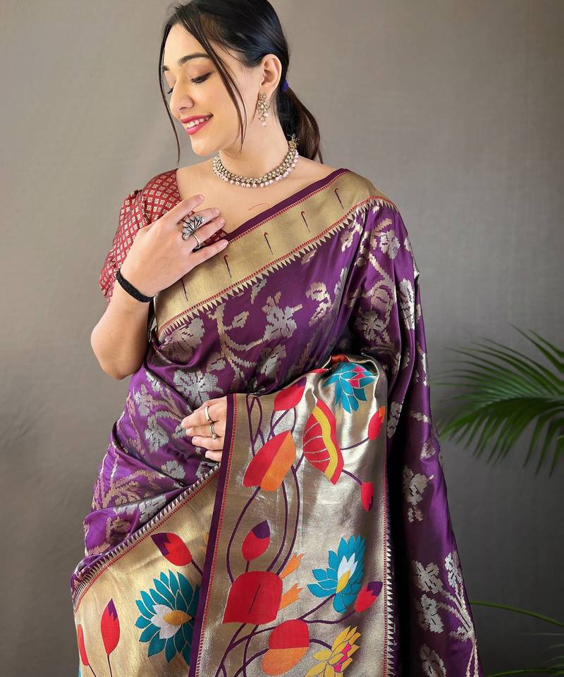 Product Name | Purple Woven Paithani Silk Saree With Blouse Piece | |