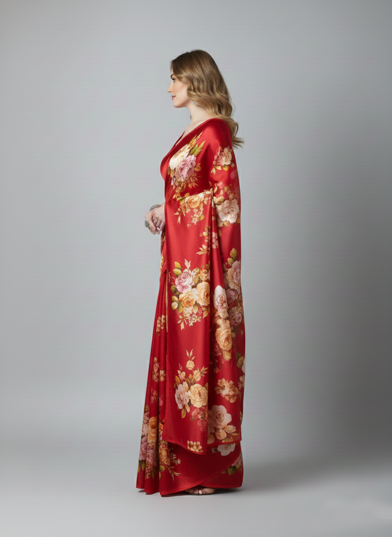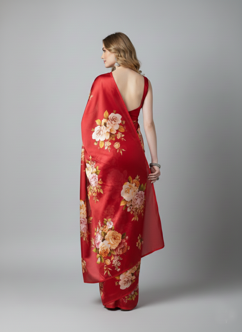 | Product Name | Red Printed Satin Saree With Blouse Piece | |