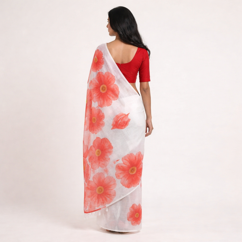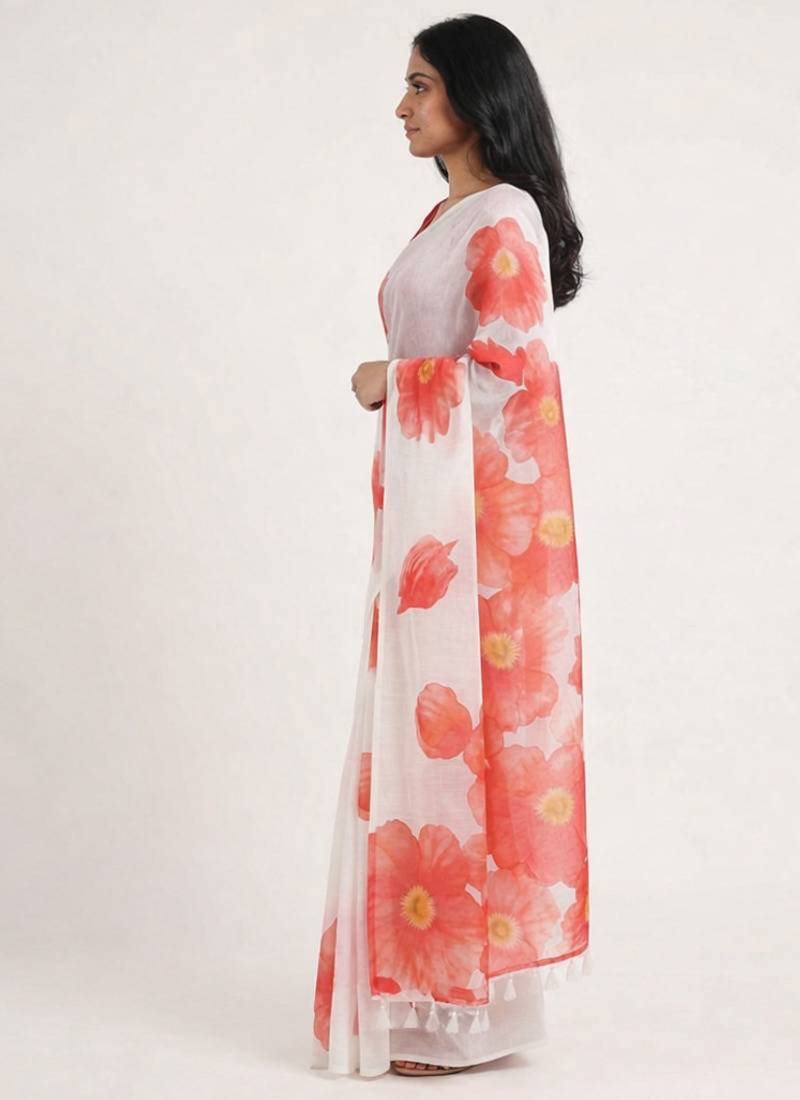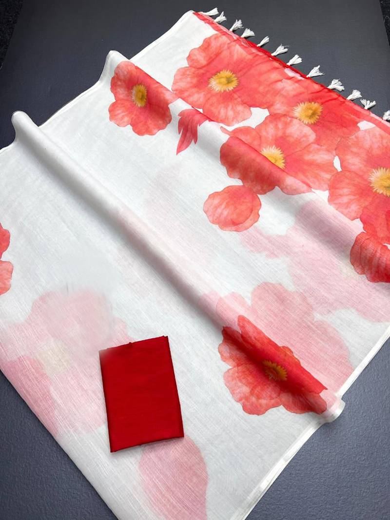 | Product Description | Elegant Linen Woven Saree Crafted With Floral Print. Saree Comes With Unstitched Linen Printed Blouse Piece. Note: Please Refer Real Image Attached |
