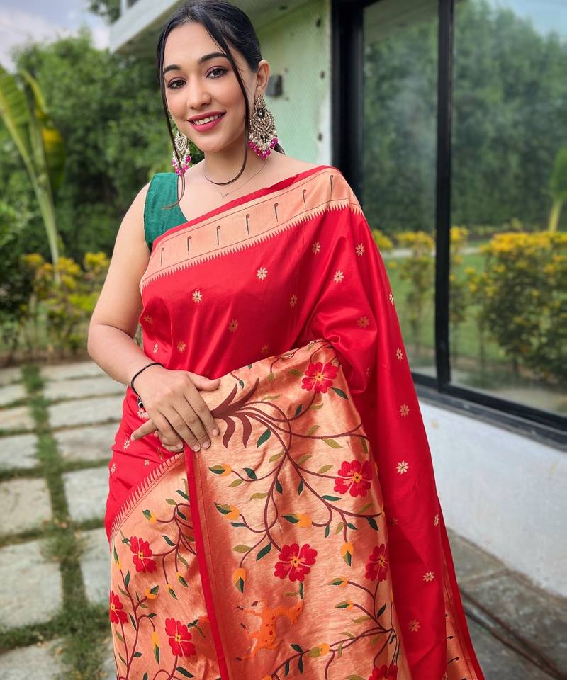 Product Name | Red Woven Paithani Silk Saree With Blouse Piece | |
