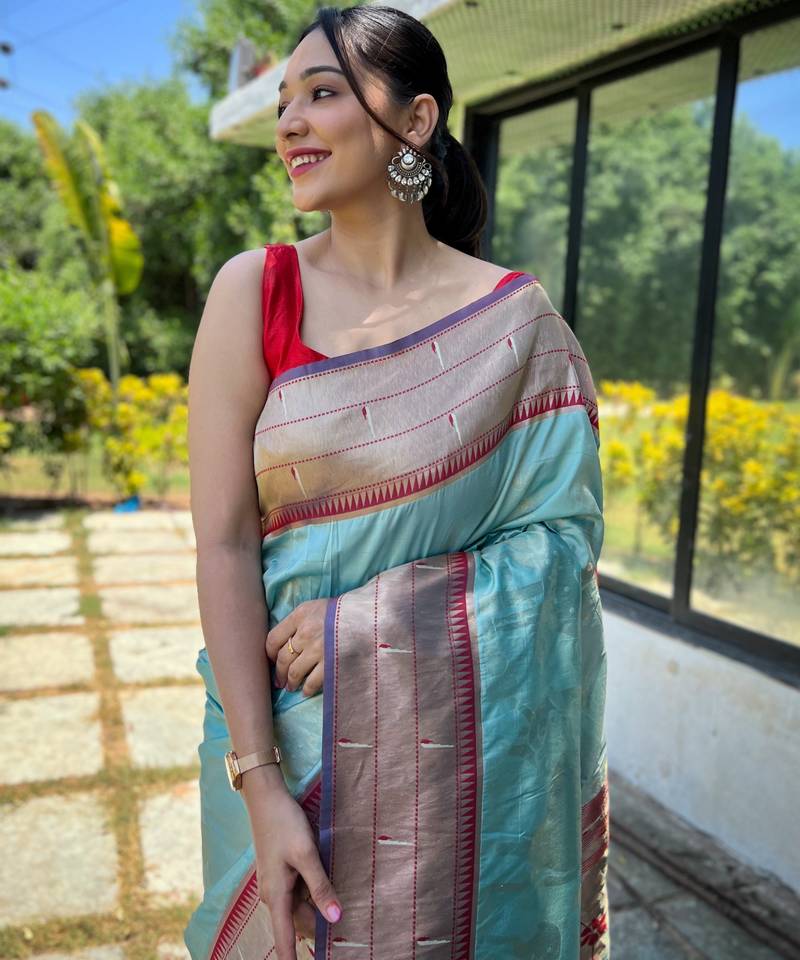 Product Name | Sky Blue Woven Paithani Silk Saree With Blouse Piece | |