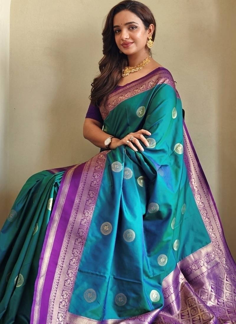Product Description | Soft Silk Saree Crafted With Beautiful Coin Weaving Design All Over Saree With Contrast Border & Beautiful Contrast Pallu. Saree Comes With Contrast Running Blouse Piece. Note: Blouse Wore By Model Is For Shooting Purpose Only, It Might Differ In Actual |