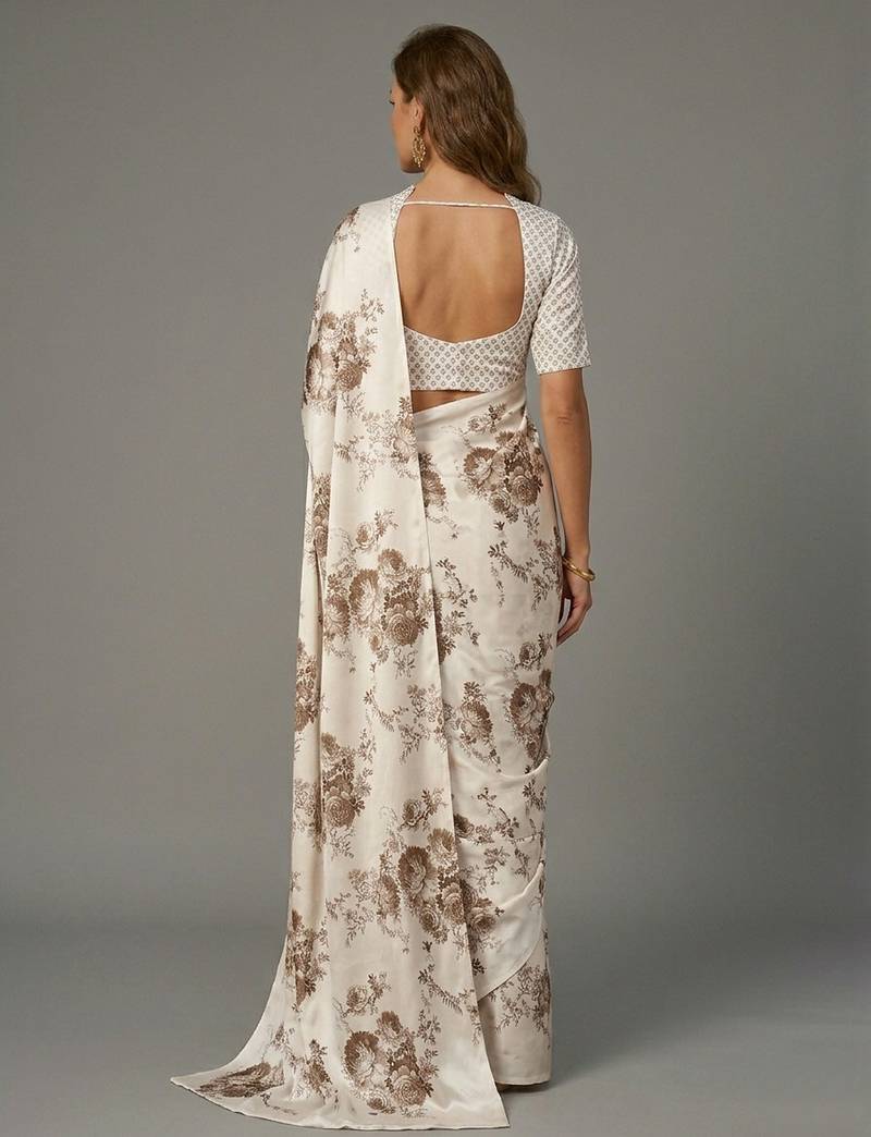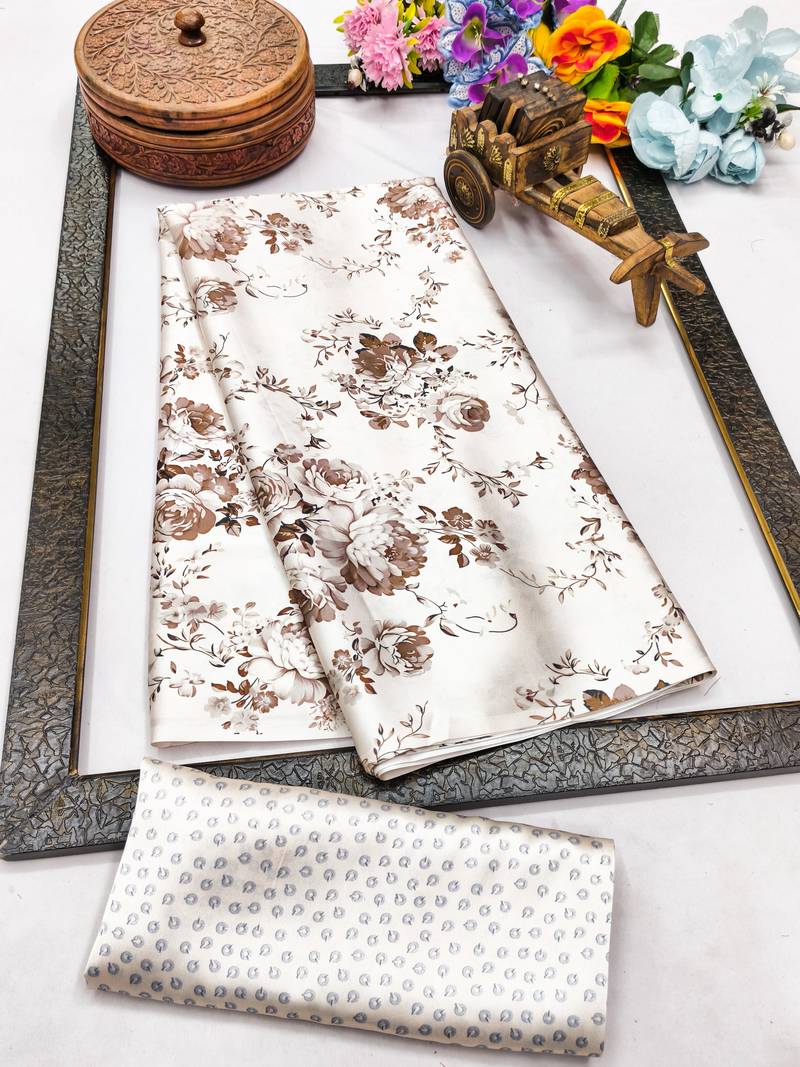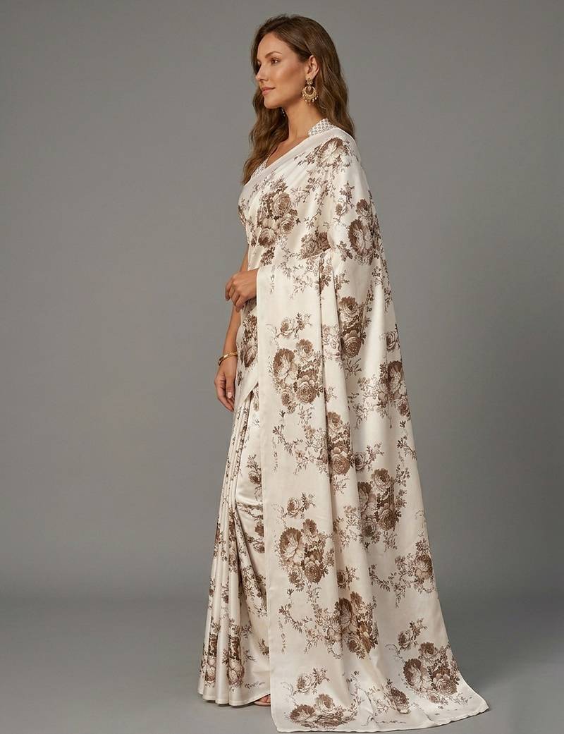 Elegant Satin Printed Saree Crafted With Floral Pattern Design. Saree Comes With Unstitched Satin Blouse Piece. Note: Please Refer Real Image Attached